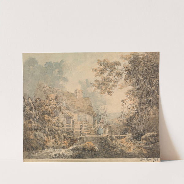 Cottage and Foot Bridge by William Henry Pyne - Wall Art Print