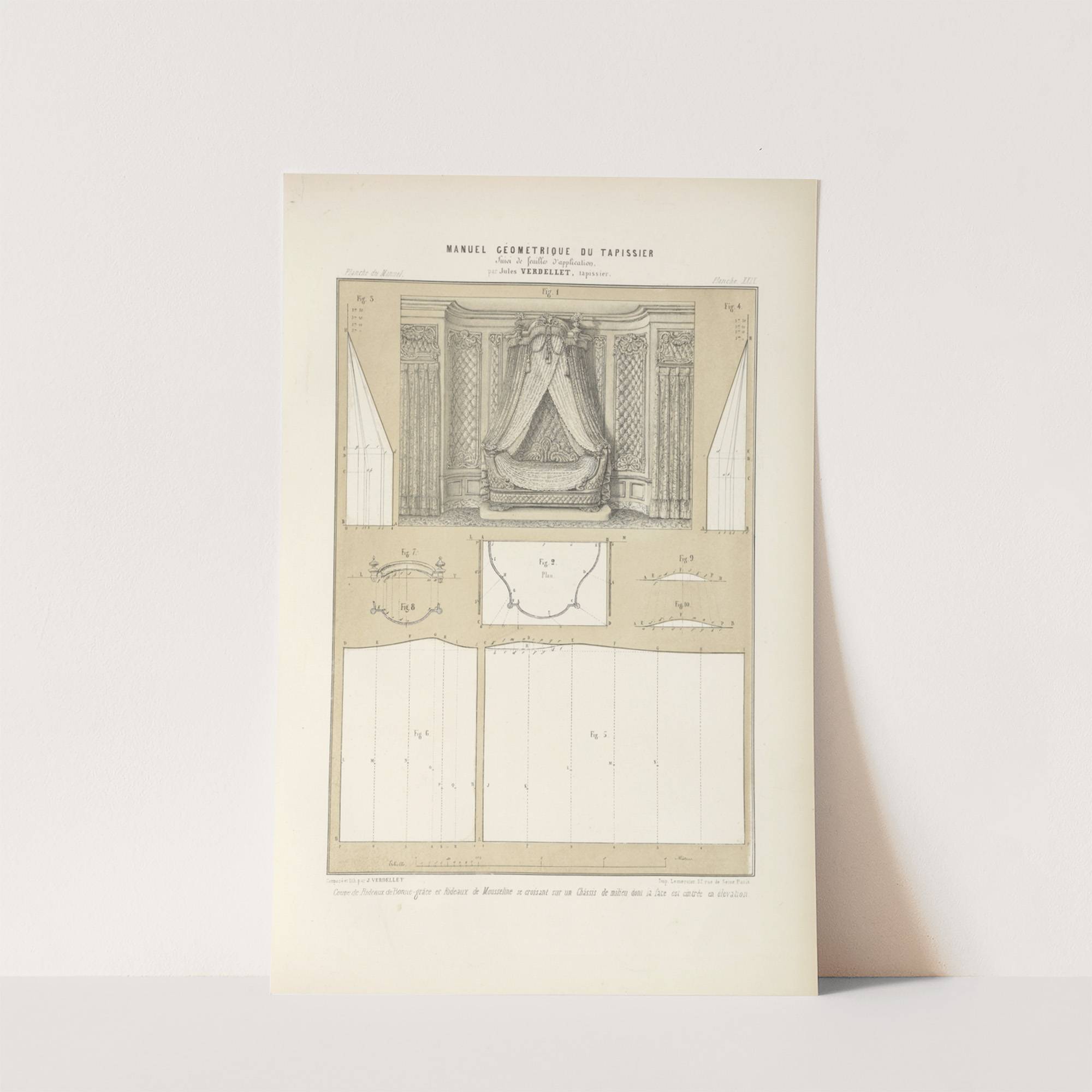 Coupe de rideaux de bonne-grâce et rideaux de mousseline se croisant sur un châssis de milieu dont la face est cintrée en élevation. by Jules Verdellet - Wall Art Print