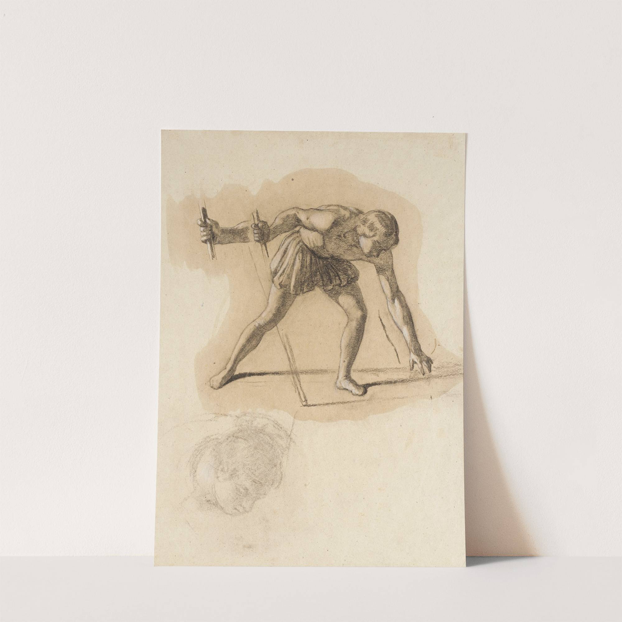 Crouching Male Figure Holding Staff by John Vanderlyn - Wall Art Print