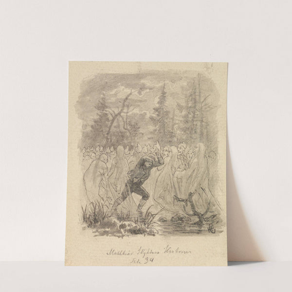 Da han var kommen midt ut på myra, var det så fullt med folk at han ordentlig måtte alboge seg fram by Hans Gude - Wall Art Print