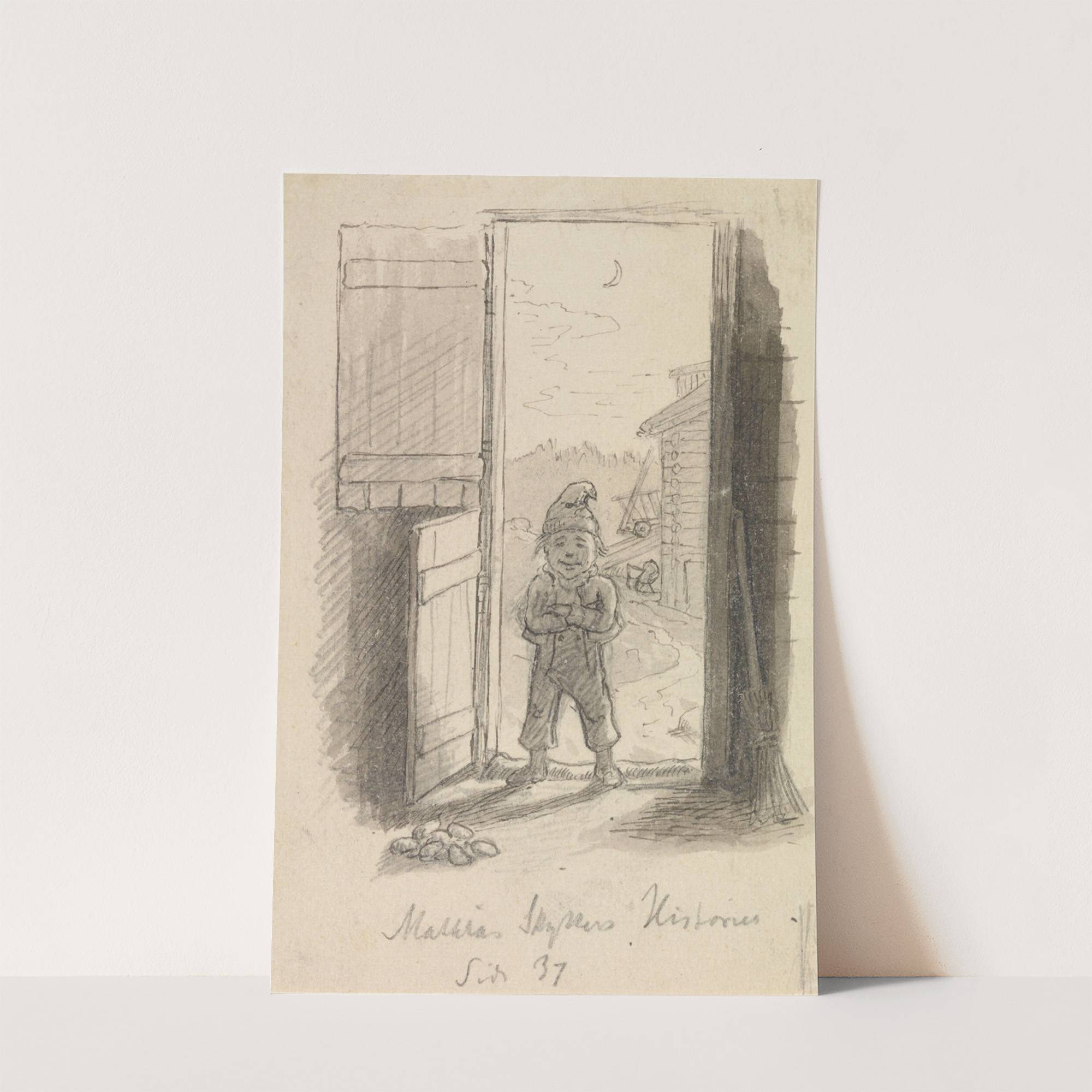 Da je kom opp-att, sÃ¥ sto ‘n i stalldøra og skrasla og lo sÃ¥ den raue topplua nikka by Hans Gude - Wall Art Print