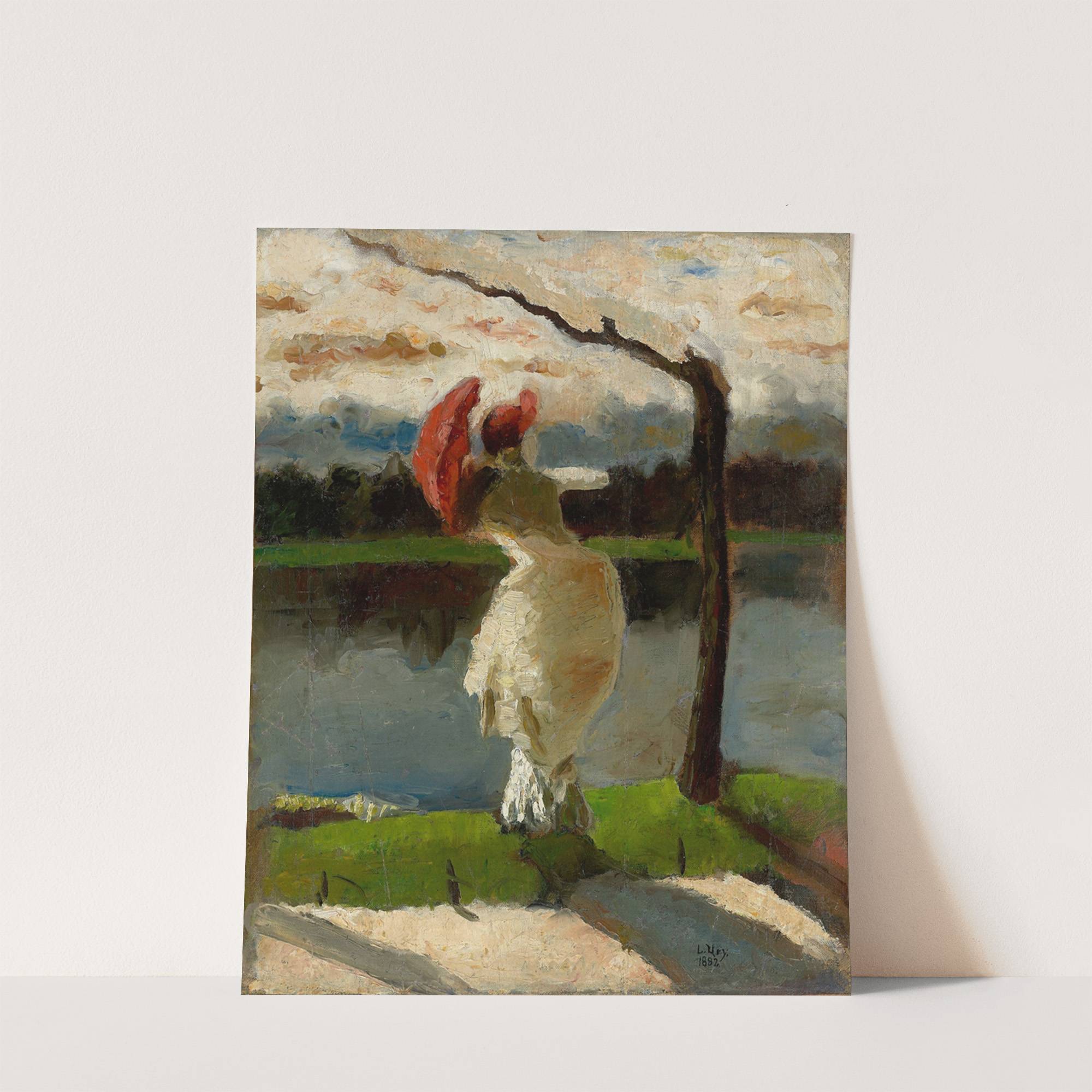 Dame mit Sonnenschirm am Ufer der Loire by Lesser Ury - Wall Art Print
