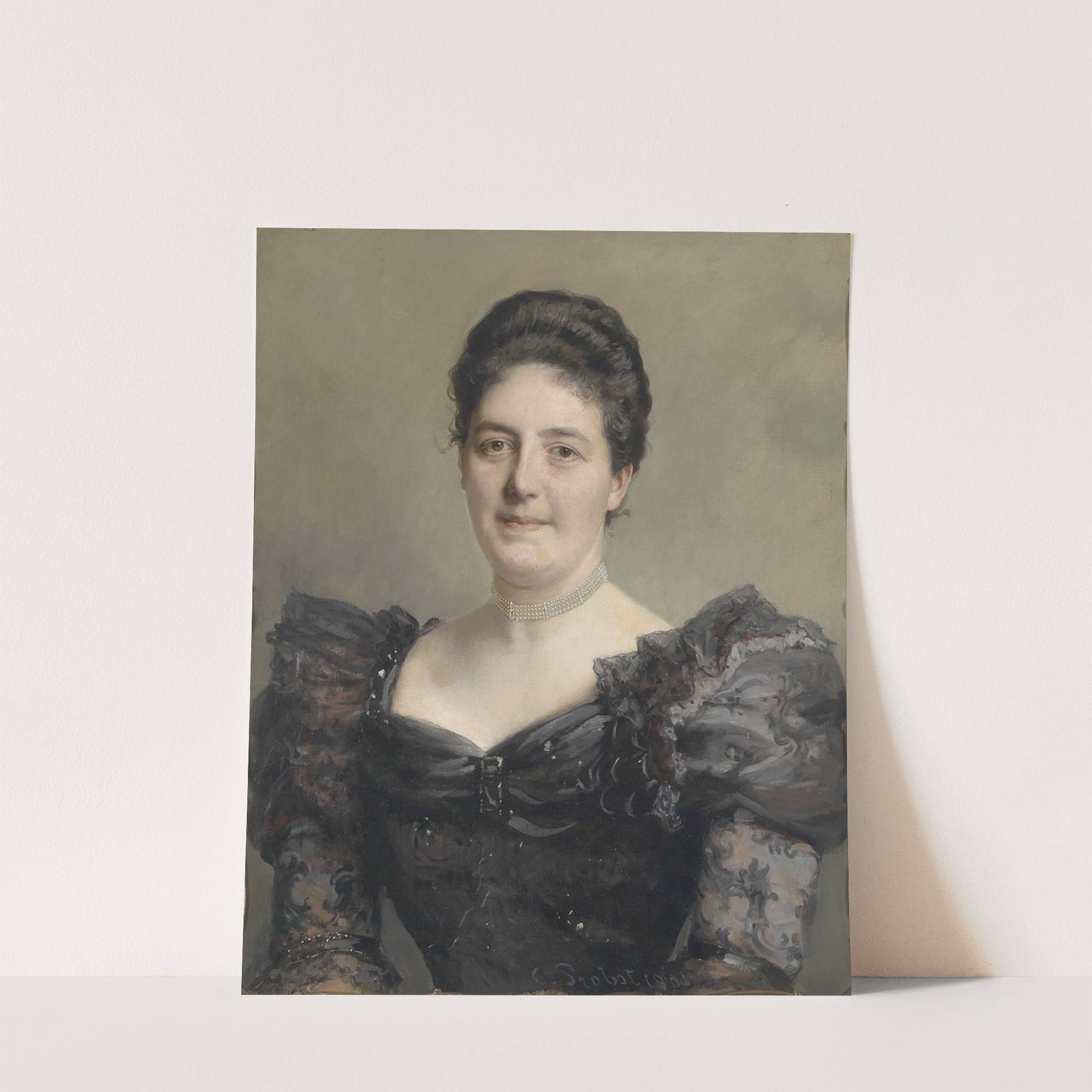 Damenbildnis im schwarzen Rüschenkleid by Carl Probst - Wall Art Print