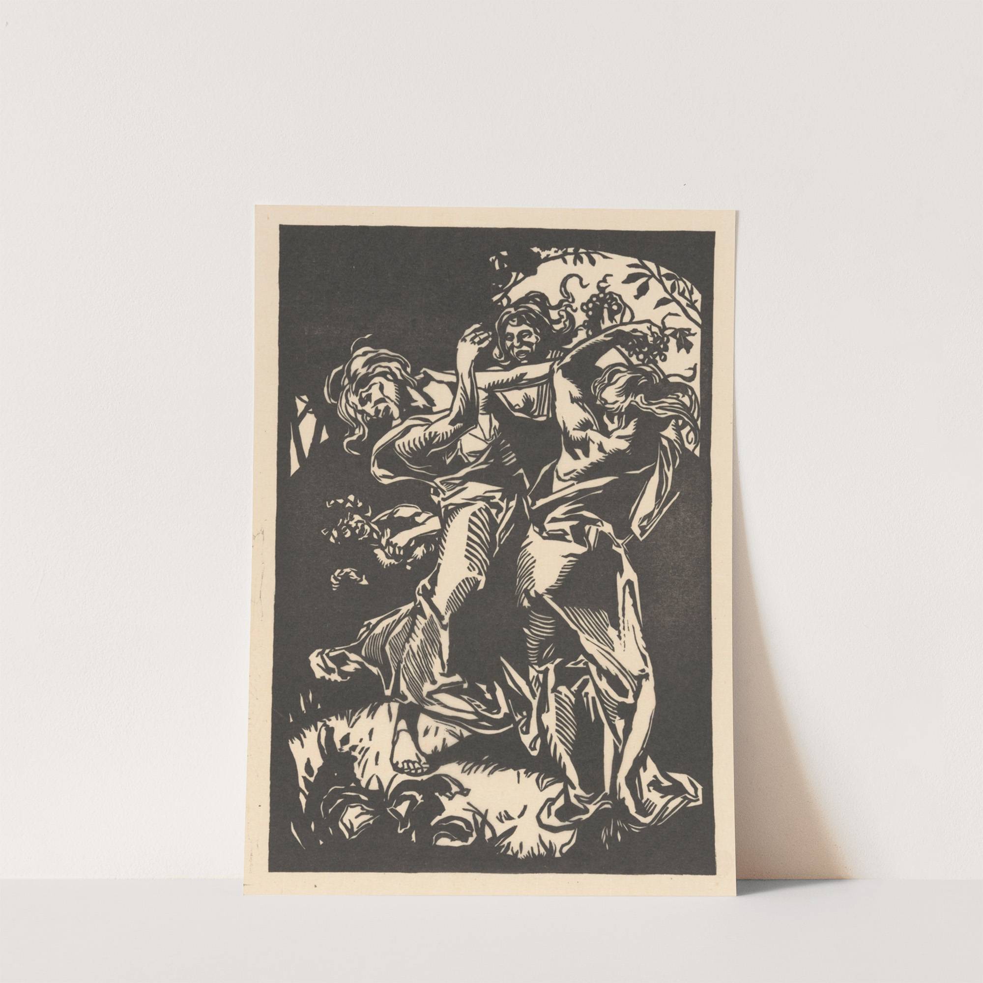 Dansende vrouwen met druiventrossen en sater (1881-1934) by Johannes Josephus Aarts - Wall Art Print