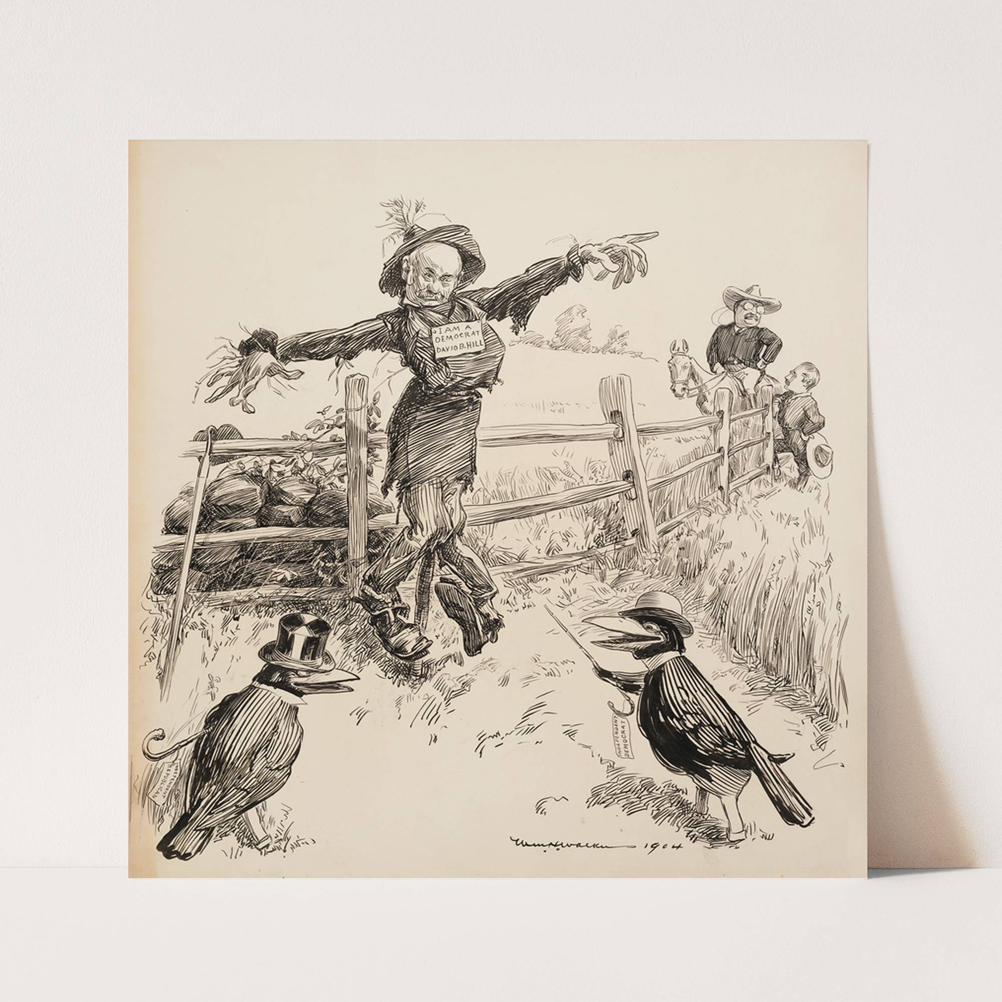David B. Hill depicted as a scarecrow with a sign that he is a Democrat (1904) by William Henry Walker - Wall Art Print