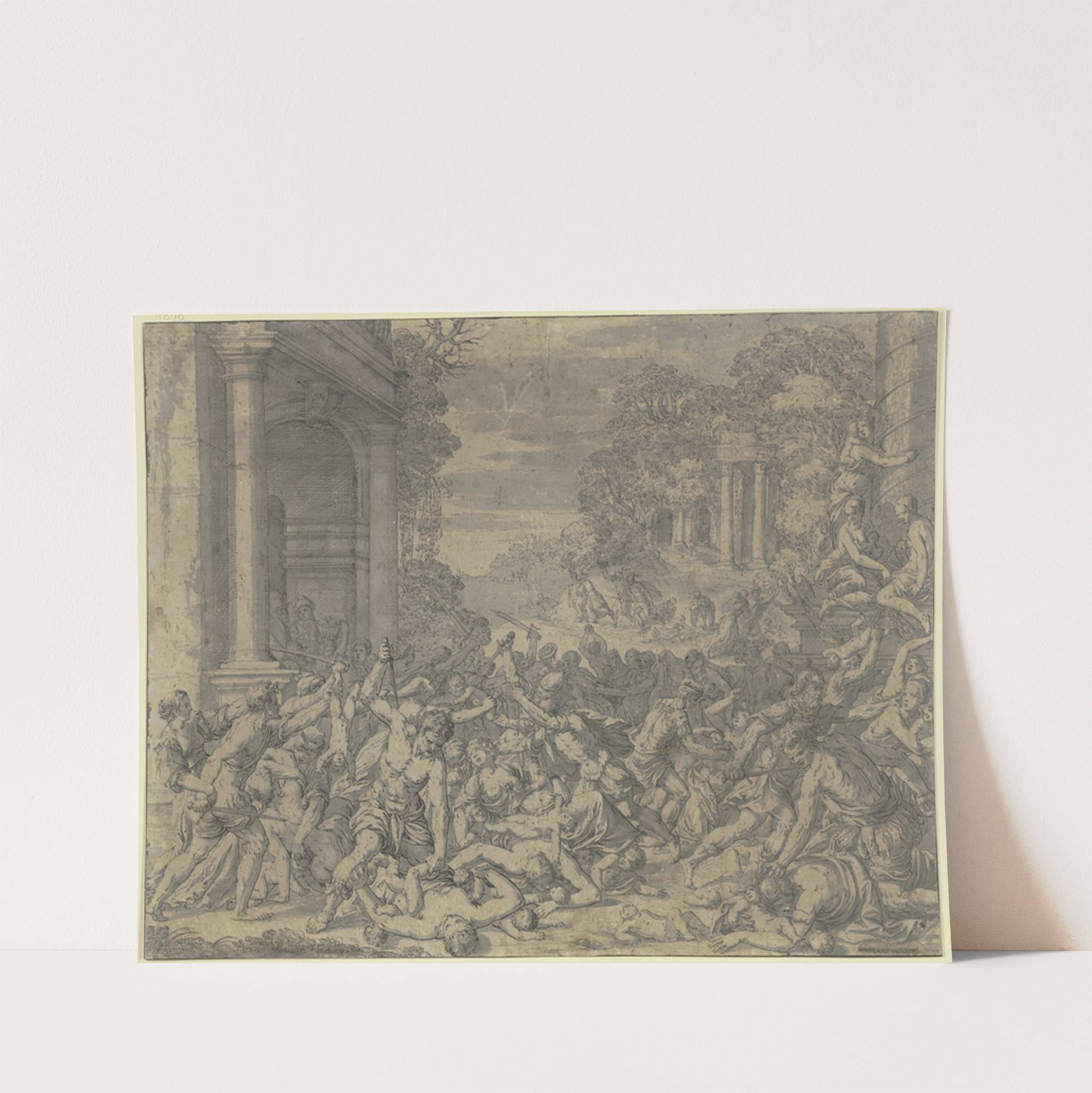 Der Bethlehemitische Kindermord vor einer Landschaft mit antiken Gebäuden by Hans Rottenhammer - Wall Art Print