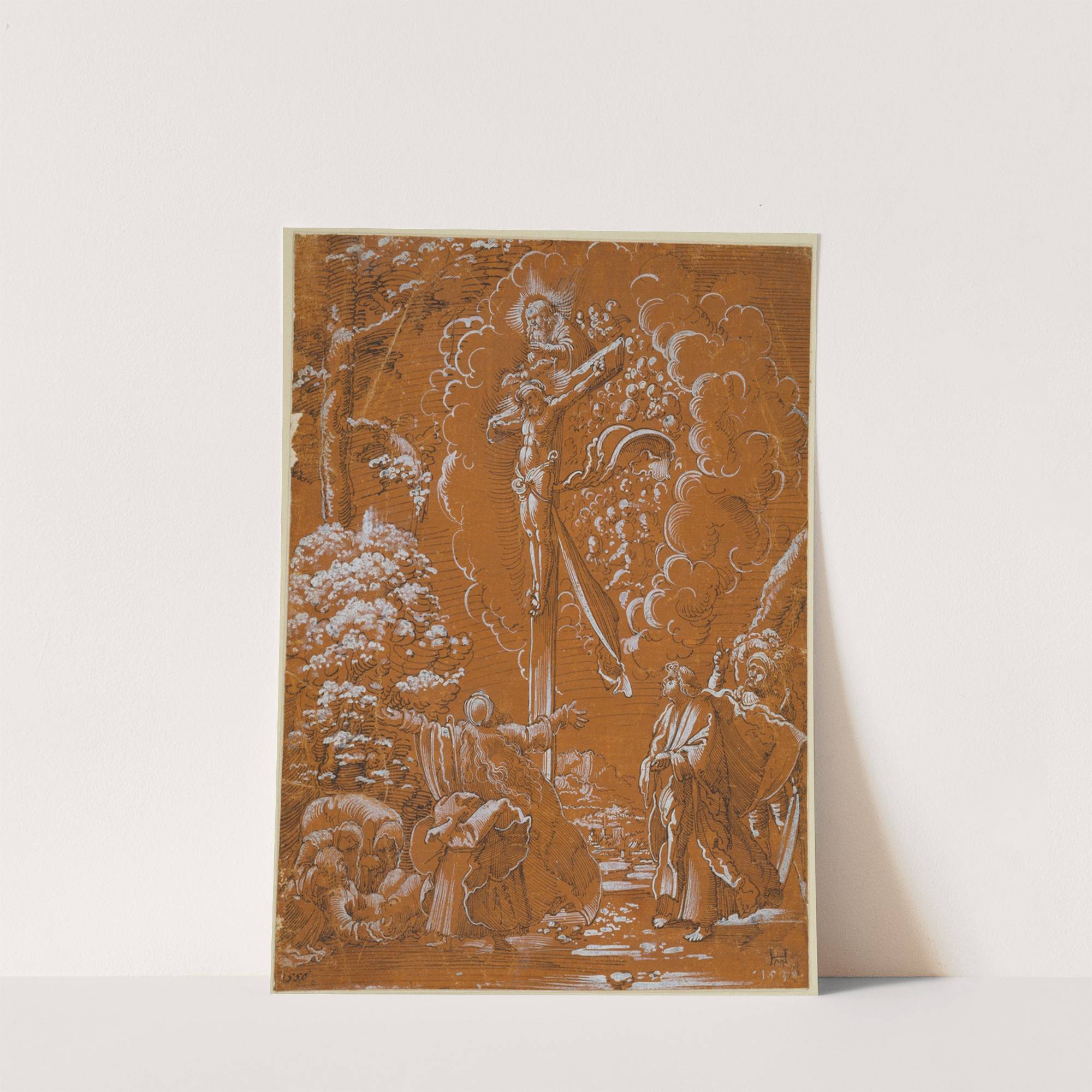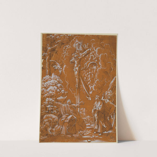 Der gekreuzigte Christus, Gottvater und der Heilige Geist in einer Landschaft mit Assistenzfiguren (1539) by Hans Mielich - Wall Art Print