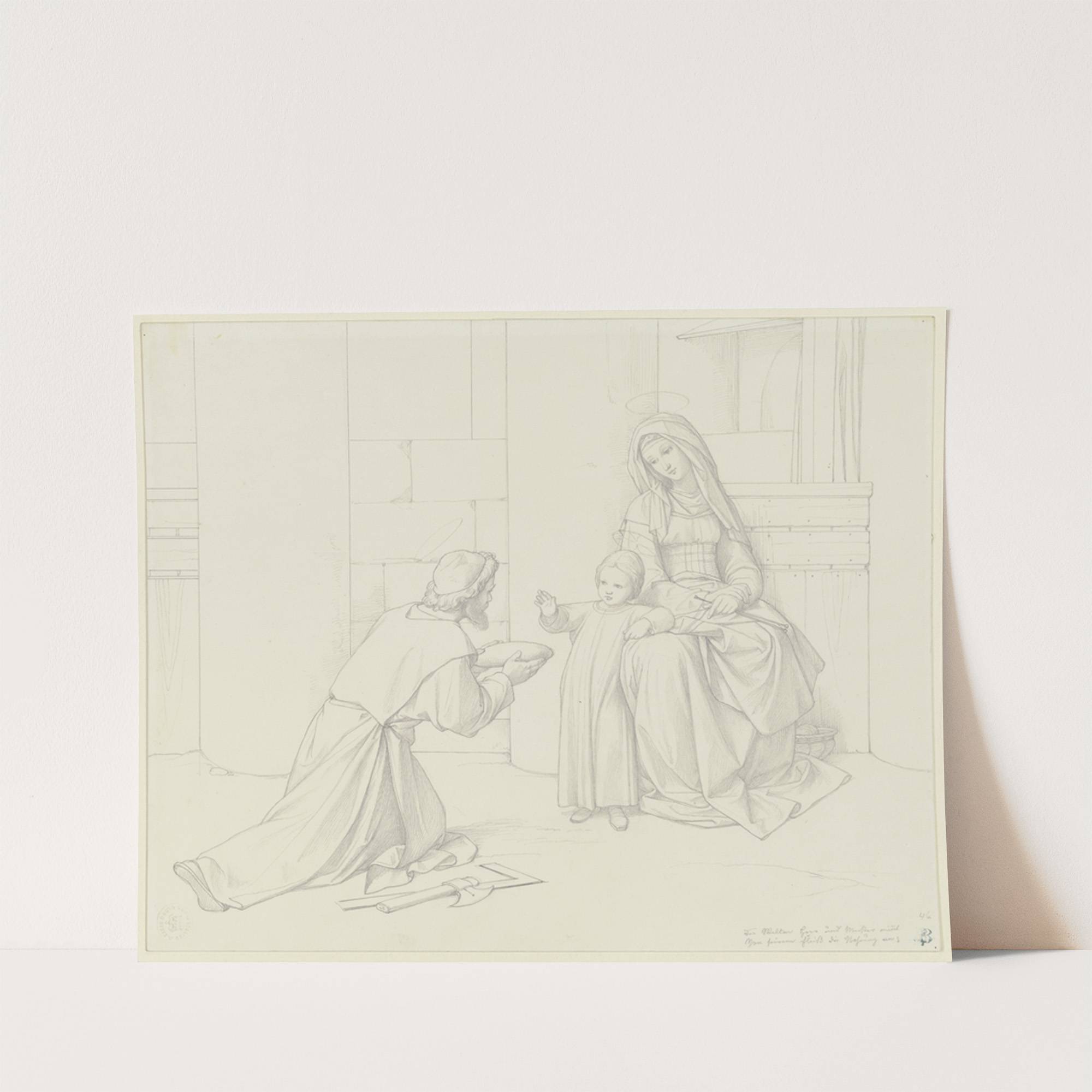 Der Heilige Jospeh bringt Maria und dem Jesuskind das Brot by Eduard von Steinle - Wall Art Print