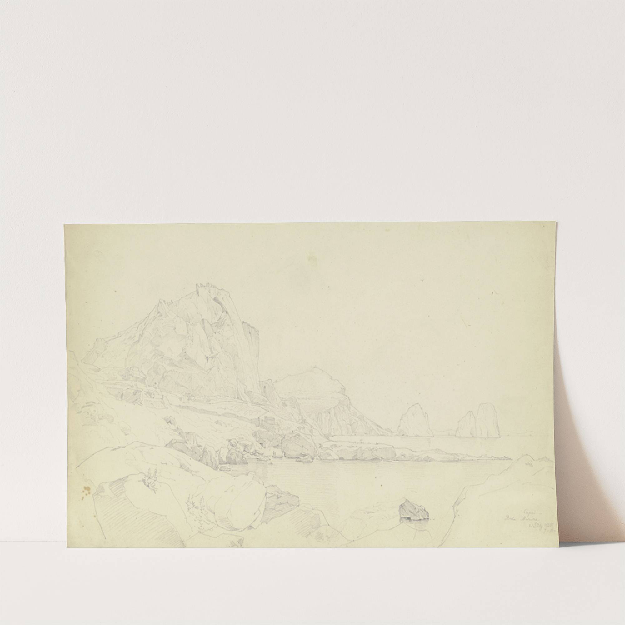 Der Monte Castiglione mit der Festung auf der Spitze, im Hintergrund auf dem Monte Tibero die Villa Jovis, rechts die Faraglioni vor Capri by Carl Morgenstern - Wall Art Print