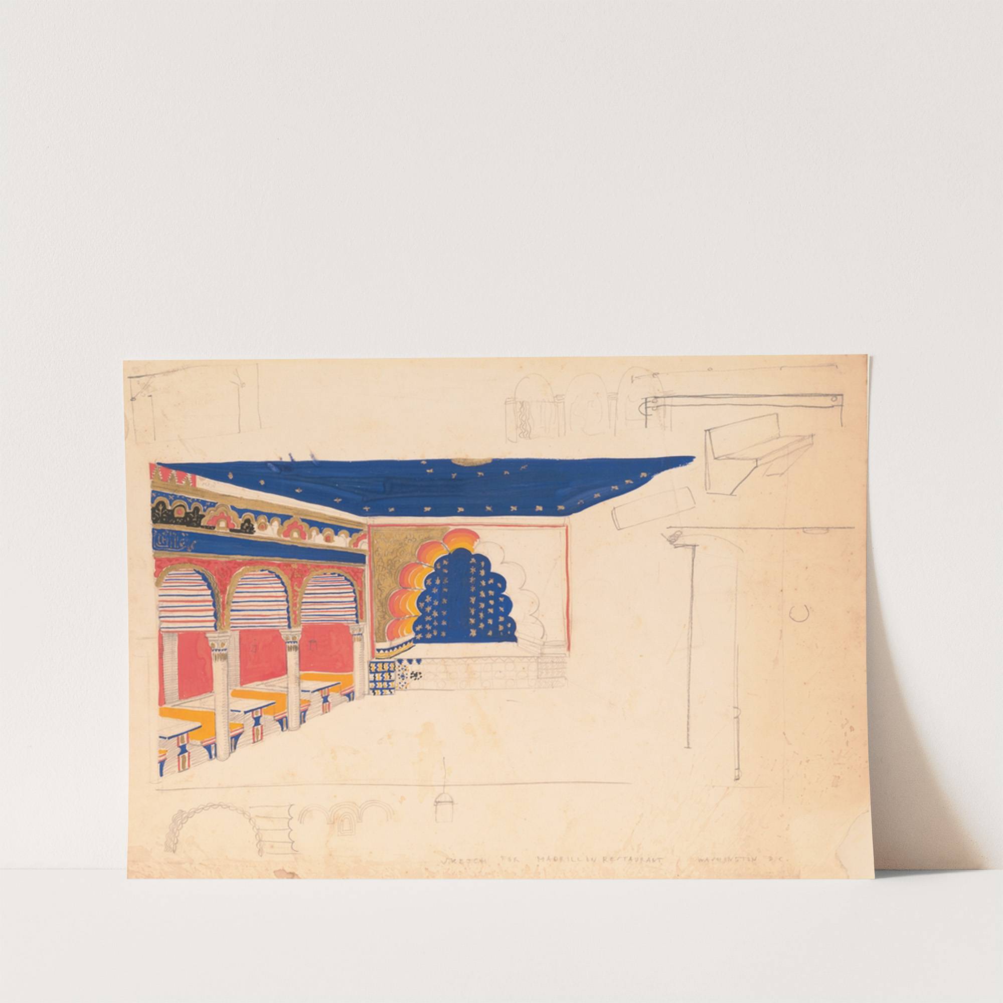 Design drawing for a restaurant (‘Madrillon Restaurant’), Washington, D.C.] [Interior perspective of arcade and stage by Winold Reiss - Wall Art Print