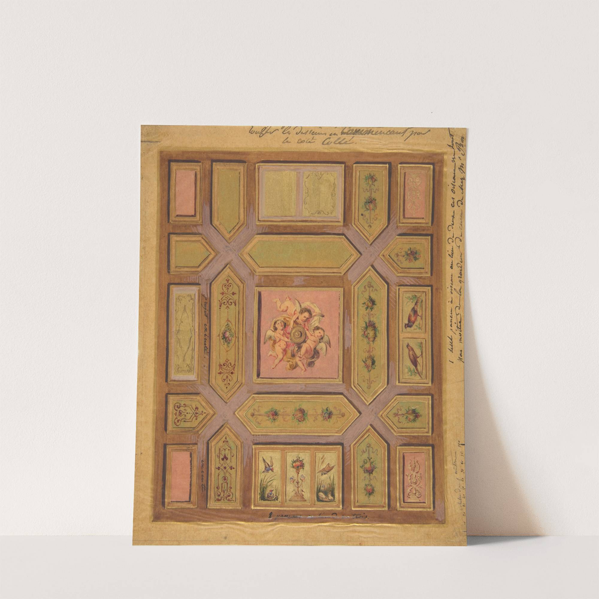 Design for a paneled ceiling painted with putti, birds, and floral motifs on tracing paper; mounted on wove paper by Jules-Edmond-Charles Lachaise - Wall Art Print