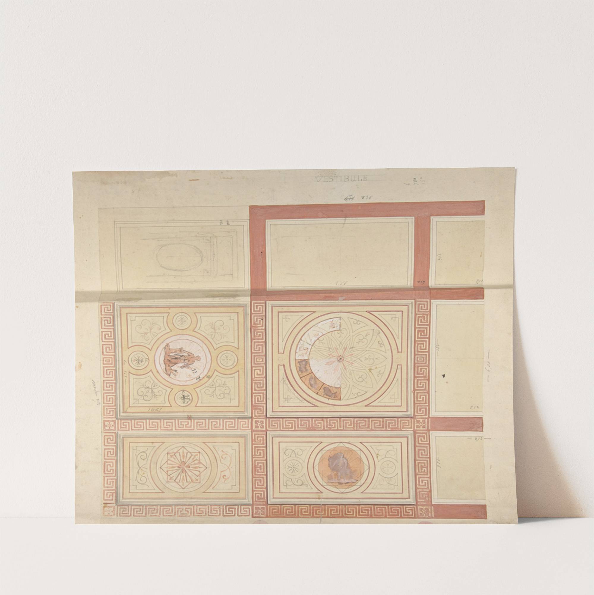 Design for the decoration of the ceiling of a vestibule in painted panels with roman key borders by Jules-Edmond-Charles Lachaise - Wall Art Print