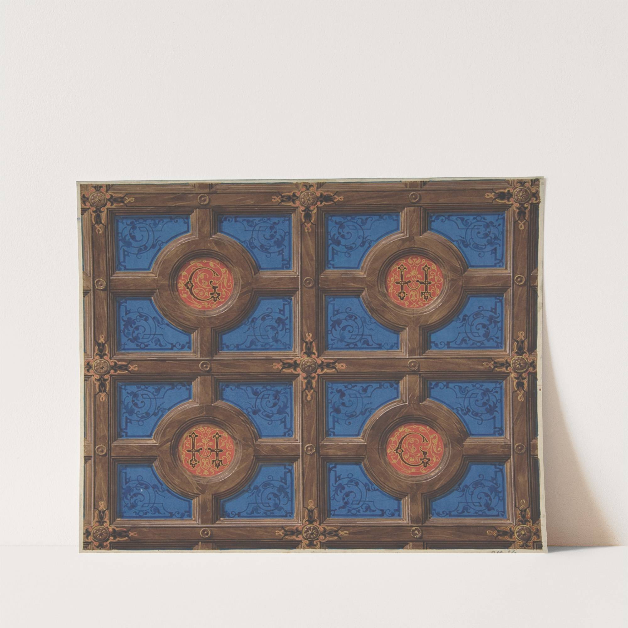 Design for the painted decoration of a coffered ceiling incorporating initials (G and H) for a house on the rue de Clichy by Jules-Edmond-Charles Lachaise - Wall Art Print