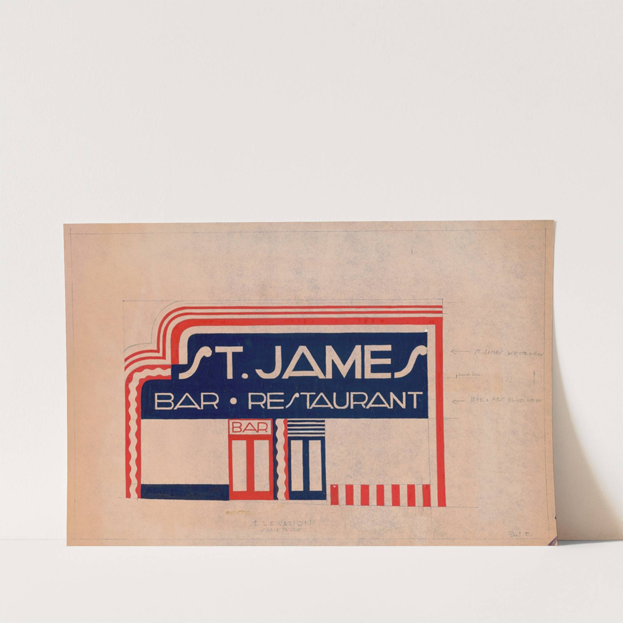 ![Designs and photographs for alterations to St. James Bar Restaurant, W. 181st St. and Broadway, New York, NY.] [Study of exterior elevation by Winold Reiss](http://artworkculture.com/cdn/shop/files/designs-and-photographs-for-alterations-to-st-james-bar-restaurant-w-181st-st-and-broadway-new-york-ny-study-of-exterior-elevation-winold-reiss_600x.jpg?v=1743487933)