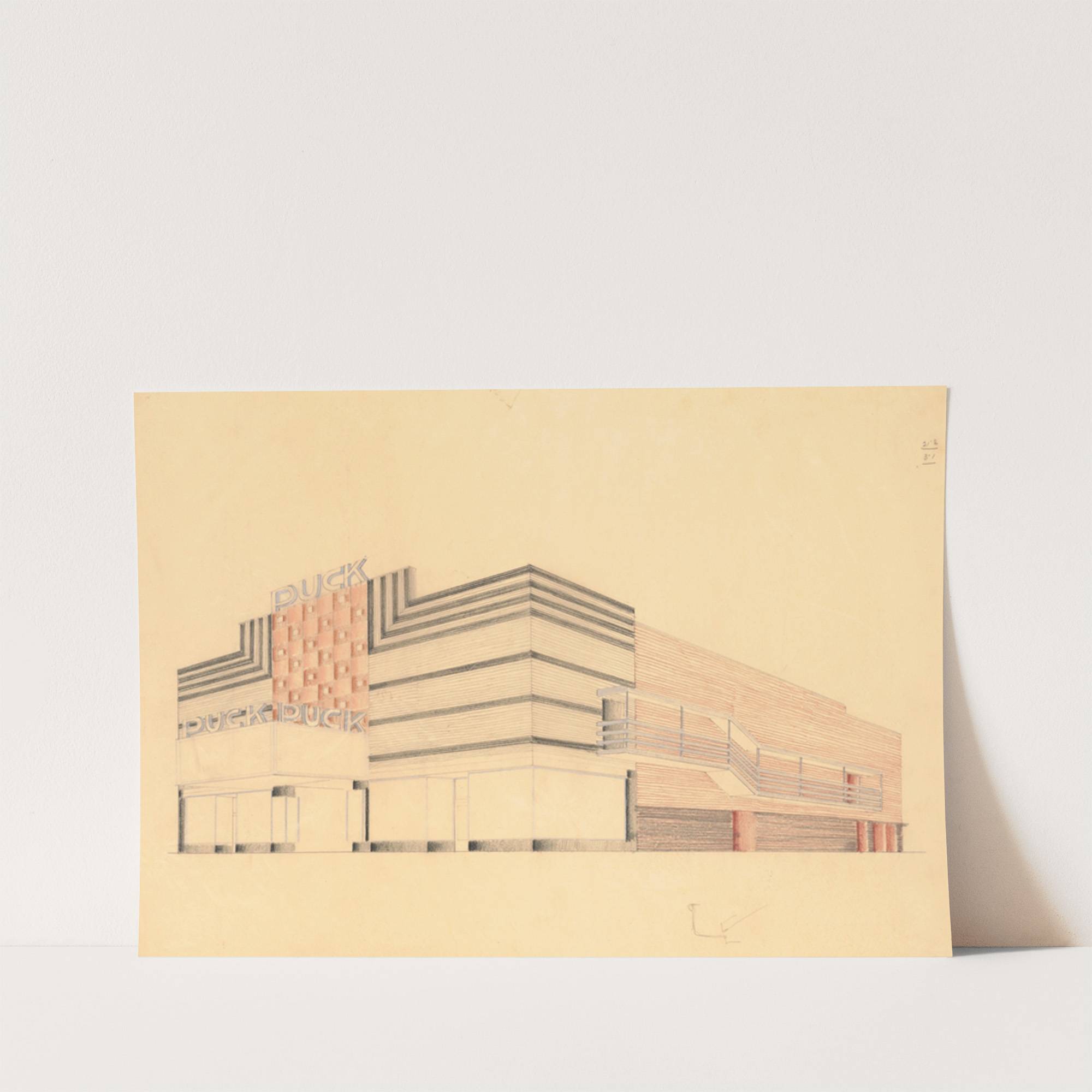 Designs for the Puck Theater (later Elgin Movie Theater, then Joyce Movie Theater), New York, NY.] [Exterior perspective study by Winold Reiss - Wall Art Print