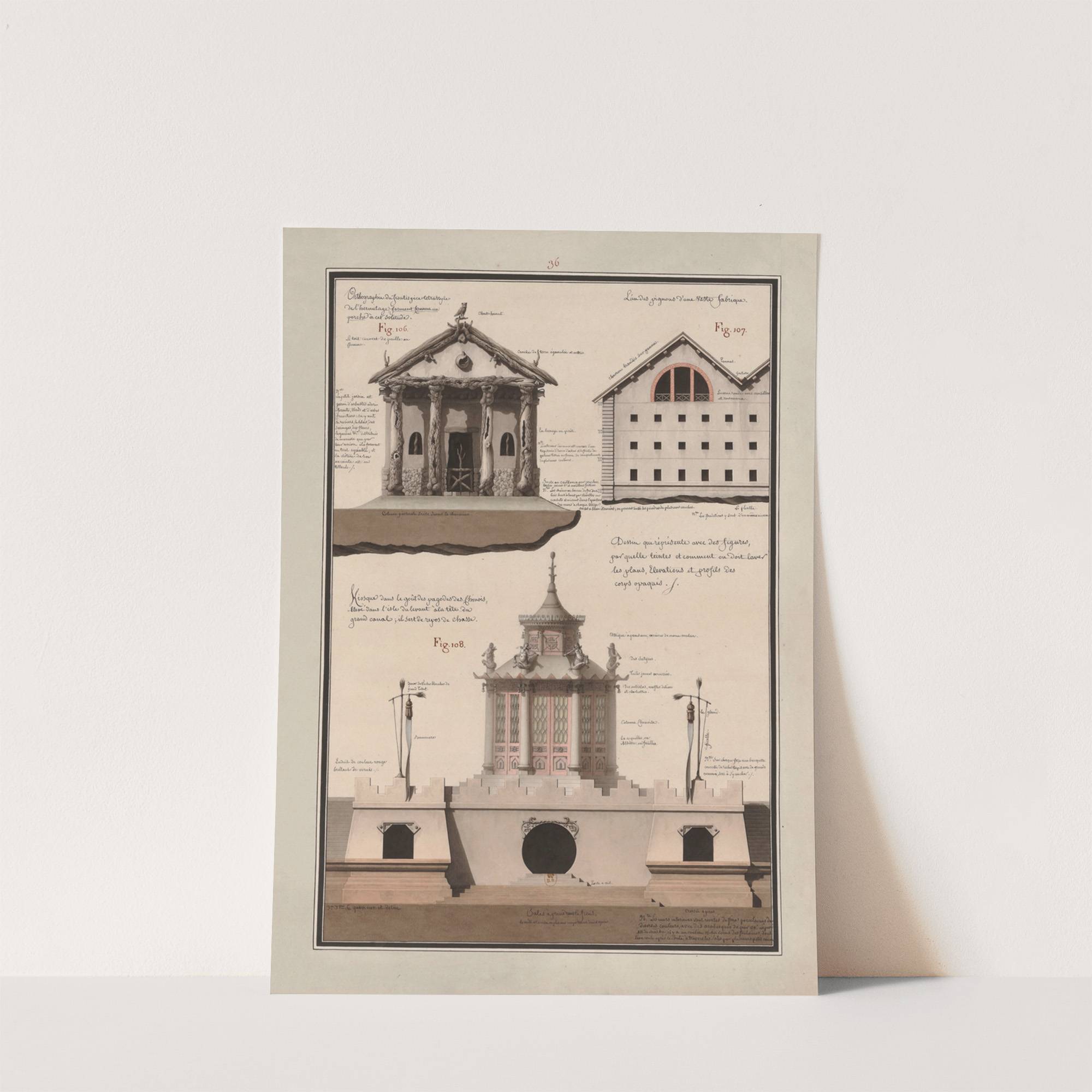 Dessin qui représente avec des figures, par quelle(s) teintes, et comment on doit laver les plans, élévations et profils des corps opaques (1777-1825) by Jean Jacques Lequeu - Wall Art Print