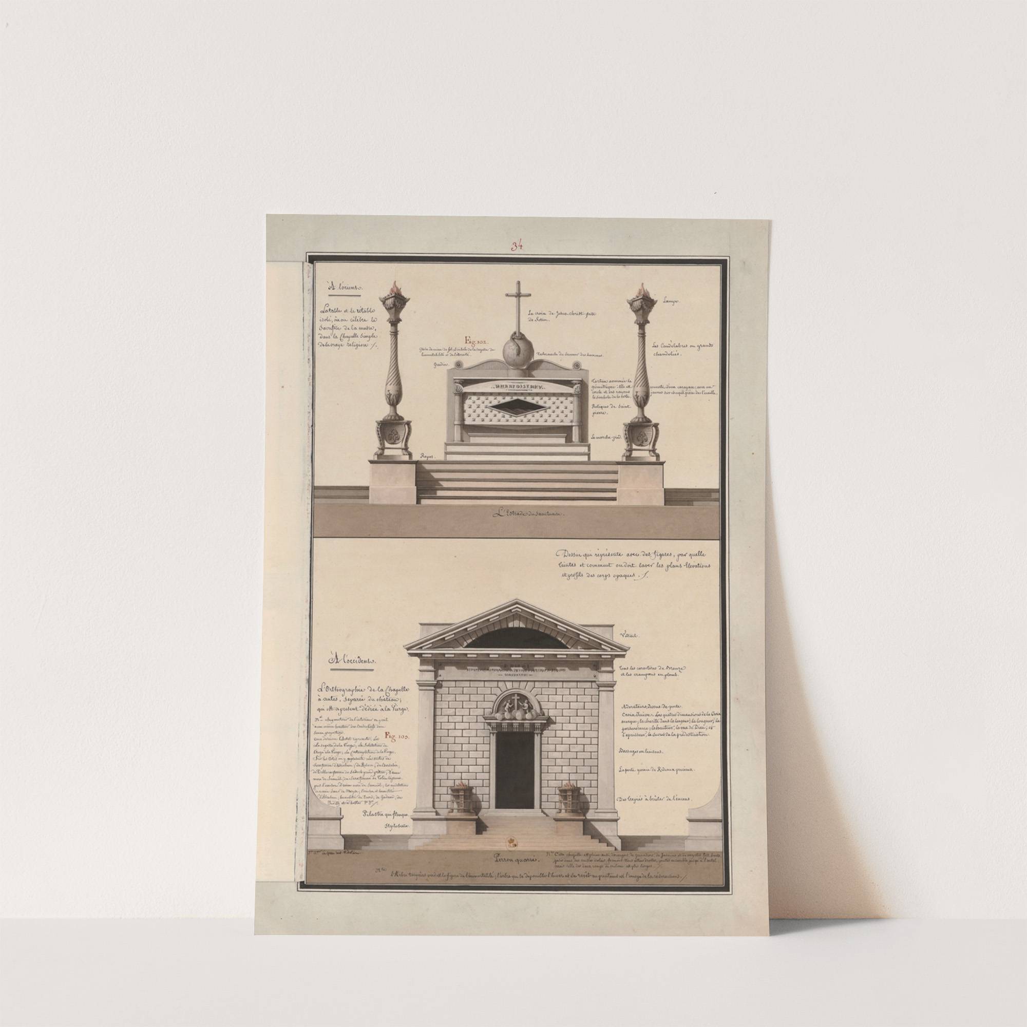 Dessin qui représente avec des figures, par quelle(s) teintes et comment on doit laver les plans élévations et profils des corps opaques (1777-1825) by Jean Jacques Lequeu - Wall Art Print