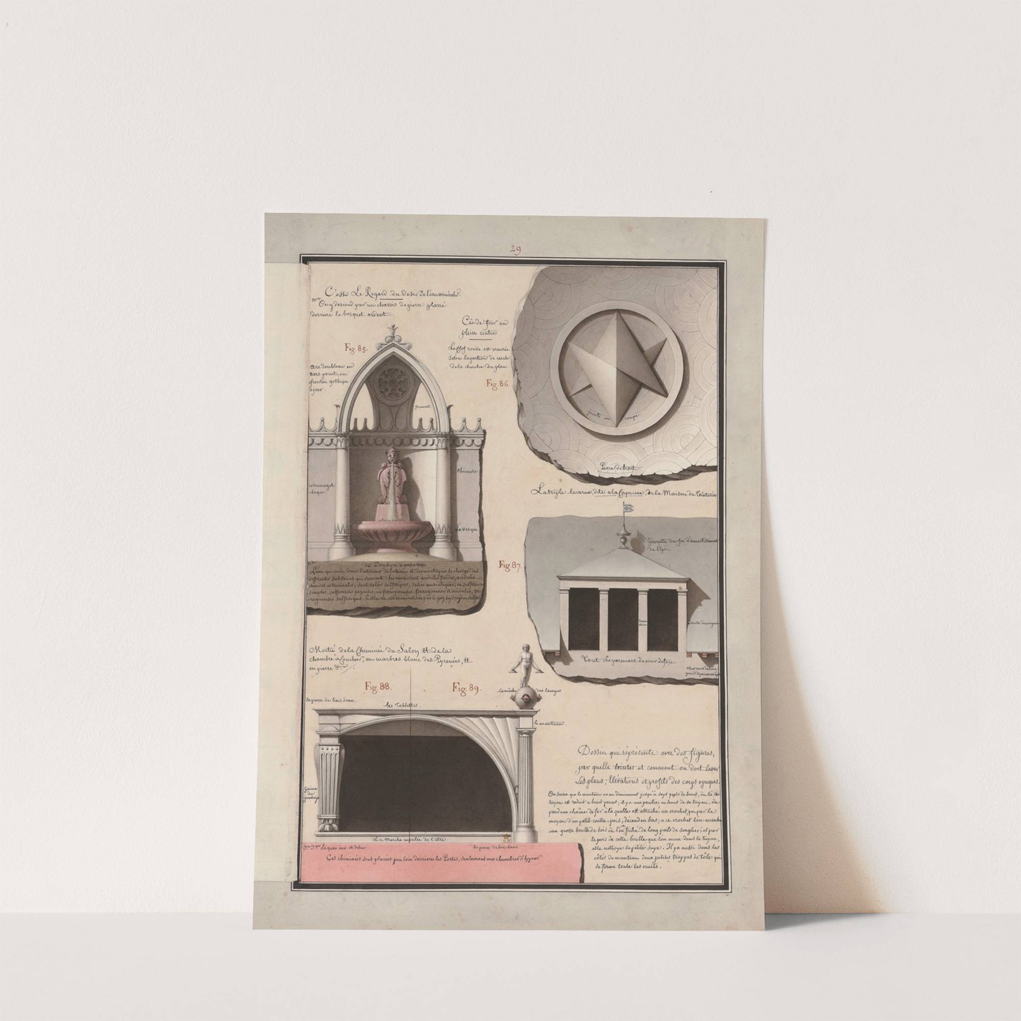 Dessin qui représente avec des figures, par quelle(s) teintes et comment on doit laver les plans, élévations et profils des corps opaques (1777-1825) by Jean Jacques Lequeu - Wall Art Print
