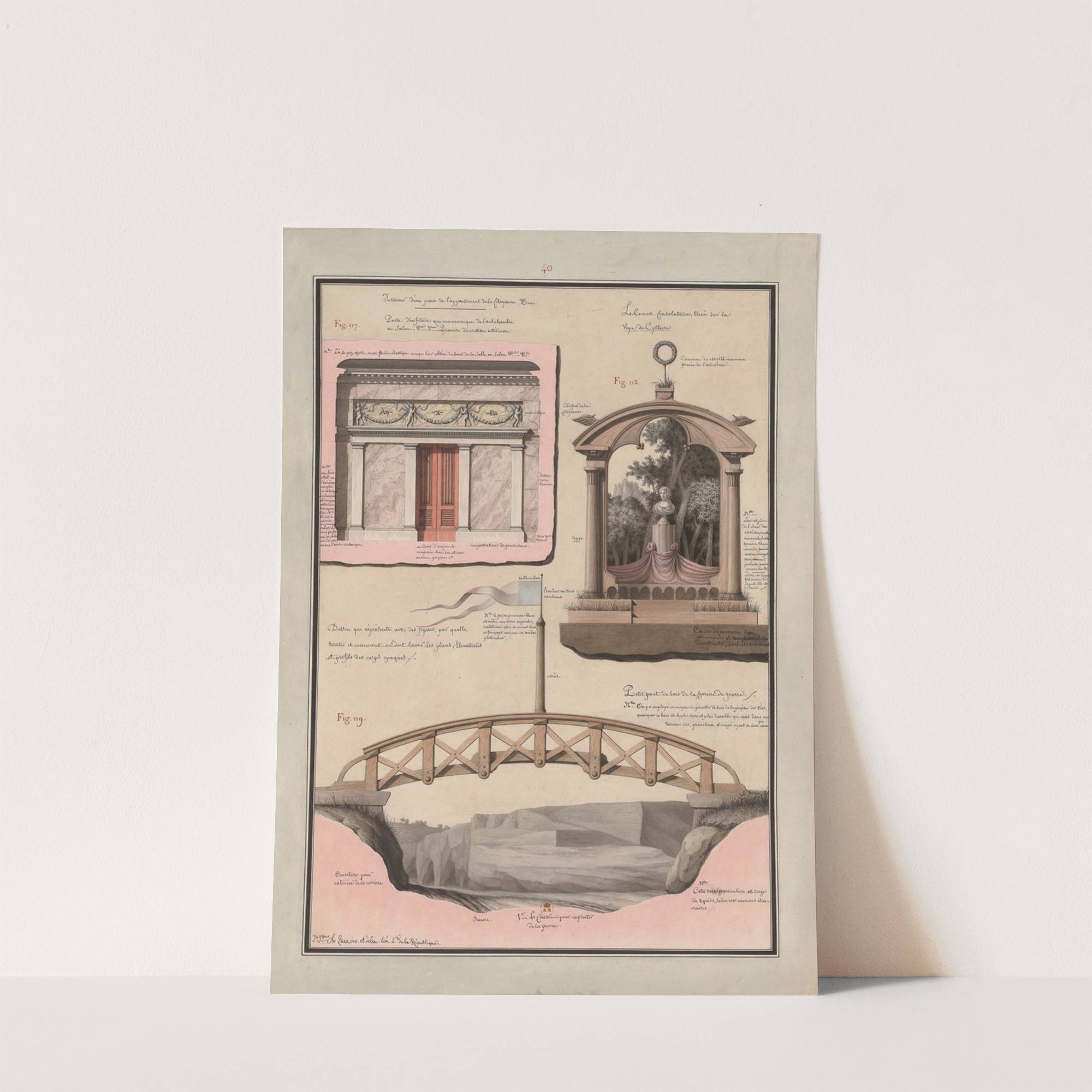 Dessin qui représente avec des figures, par quelle(s) teintes, et comment on doit laver les plans, élévations et profils des corps opaques (1777-1825) by Jean Jacques Lequeu - Wall Art Print