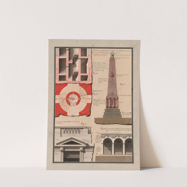 Dessin qui représente avec des figures, par quelle(s) tintes et comment on doit laver les plans, élévations et profils des corps opaques (1777-1825) by Jean Jacques Lequeu - Wall Art Print