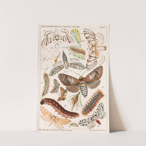 Introduce your collection to this stunning art print of "Deutsche Schmetterlingskunde für Anfänger" by Adolf Speyer, a masterpiece showcasing an array of meticulously detailed butterfly and moth specimens. This vibrant illustration features a variety of colorful and patterned insects set...