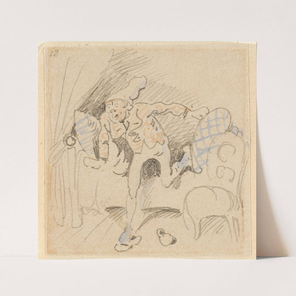 Die gestörte, aber glücklich wieder errungene Nachtruhe (Der Floh); 12 by Wilhelm Busch - Wall Art Print