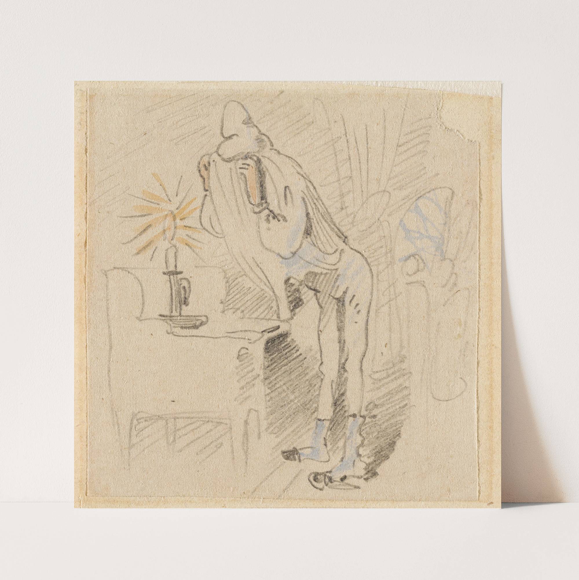 Die gestörte, aber glücklich wieder errungene Nachtruhe (Der Floh); 13 by Wilhelm Busch - Wall Art Print