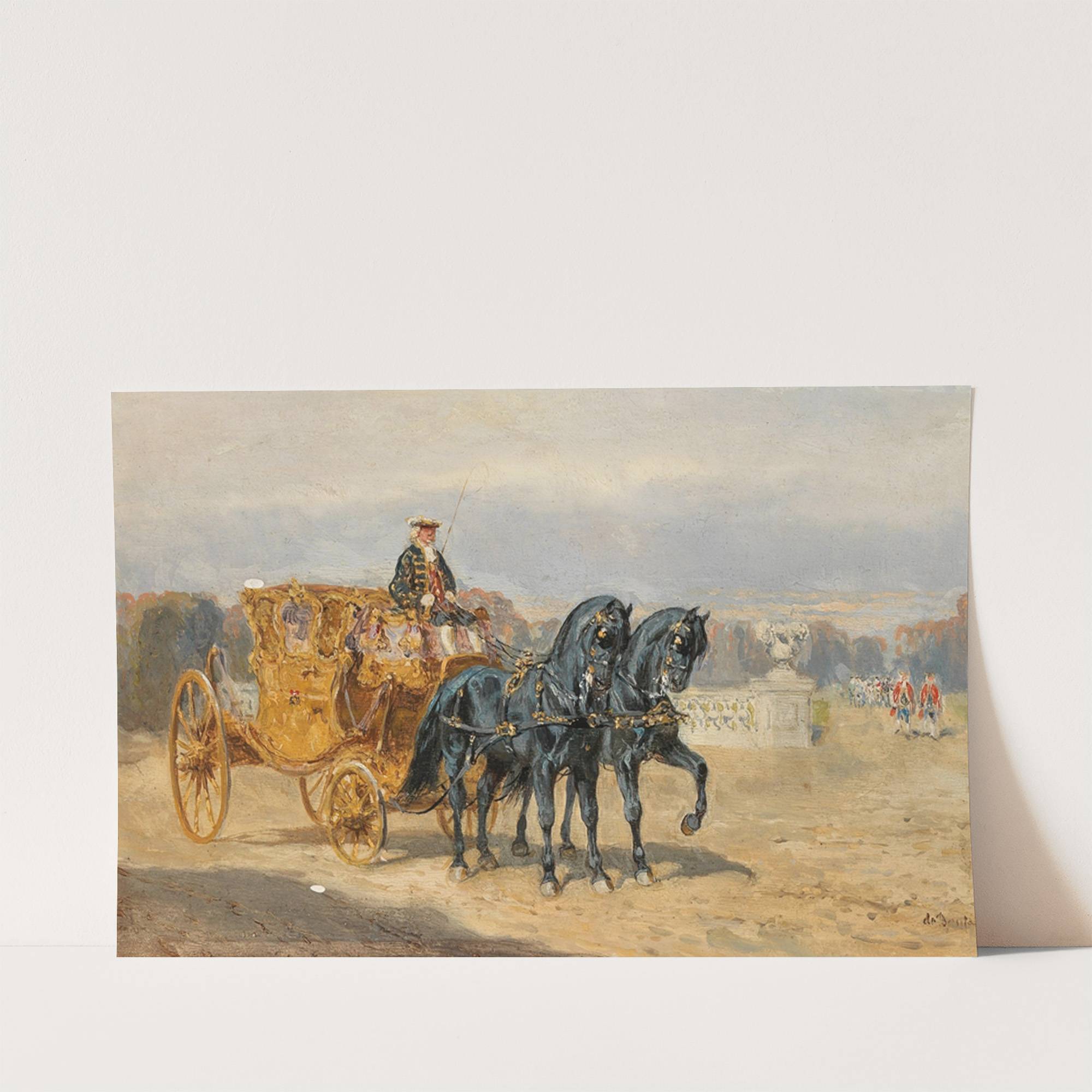 This beautiful artwork titled "Die Hofkutsche" by Alexander Von Bensa showcases a picturesque scene of a horse-drawn carriage in a countryside setting. The painting features rich, warm colors with a slightly muted palette that adds depth and realism to the...