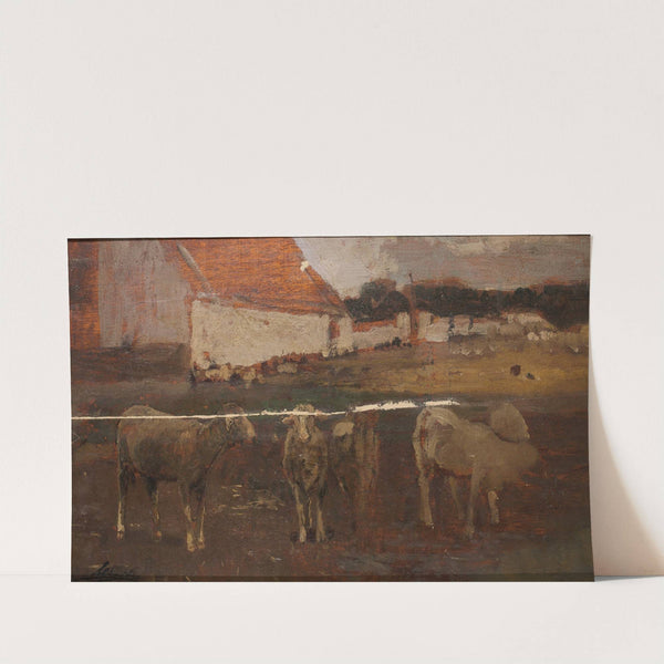 Dorflandschaft mit Schafen by Emil Jakob Schindler - Wall Art Print