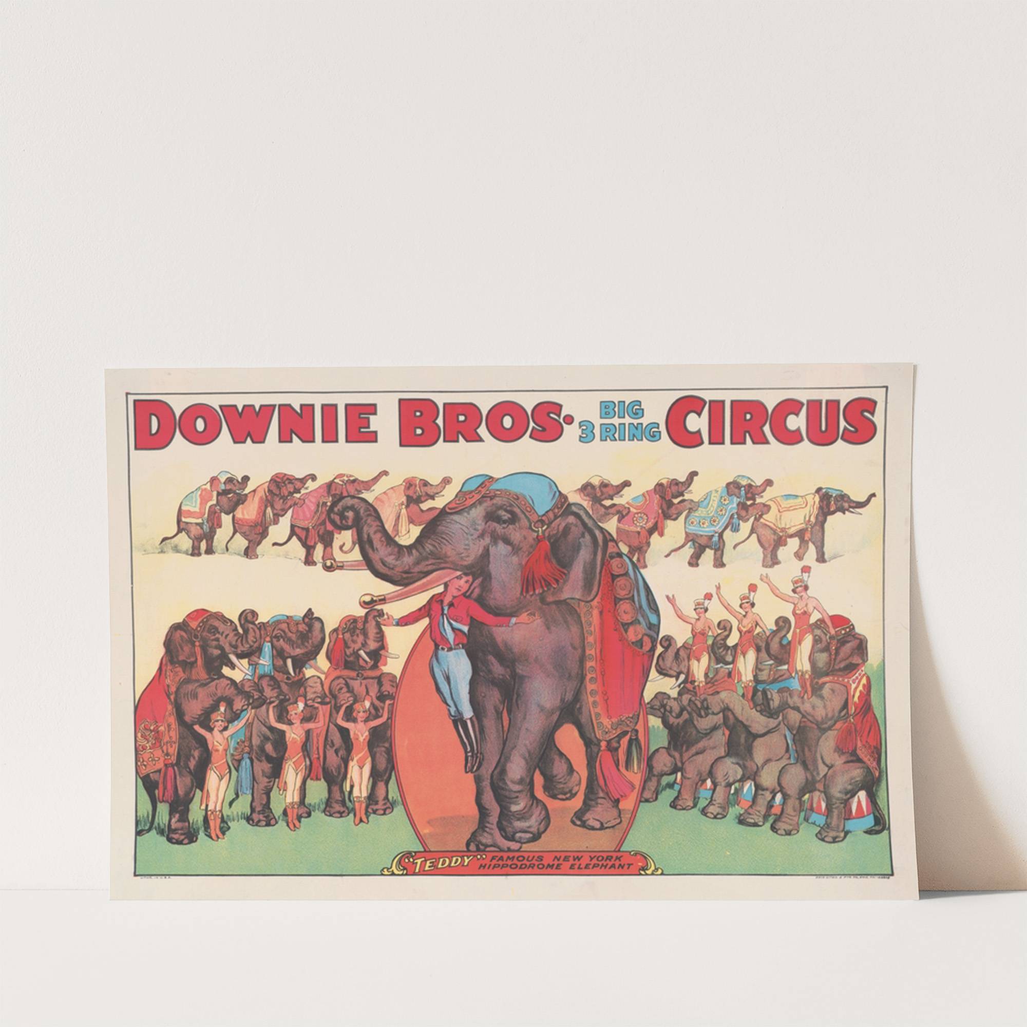 Downie Bros. Big 3 ring circus. ‘Teddy’ famous New York hippodrome elephant (1920-1930) by Erie Litho Co. - Wall Art Print