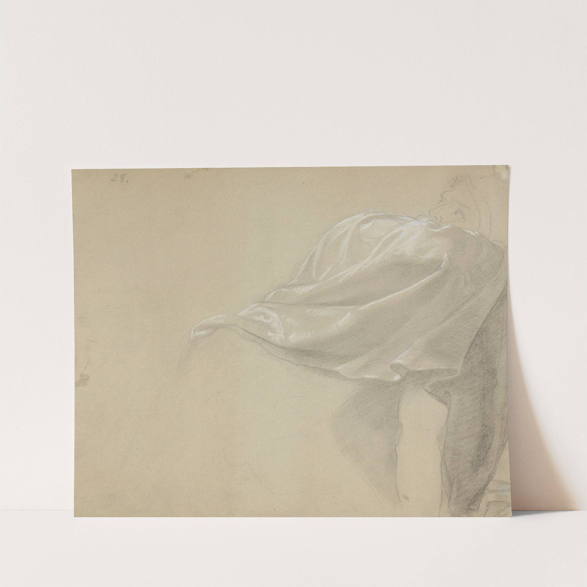 This elegant art print features "Draperistudier" by the renowned artist Adolph Tidemand. Rendered in a delicate monochromatic pencil sketch on textured, off-white paper, this piece captures the graceful movement of flowing fabric. The focus is on the gentle billow and...