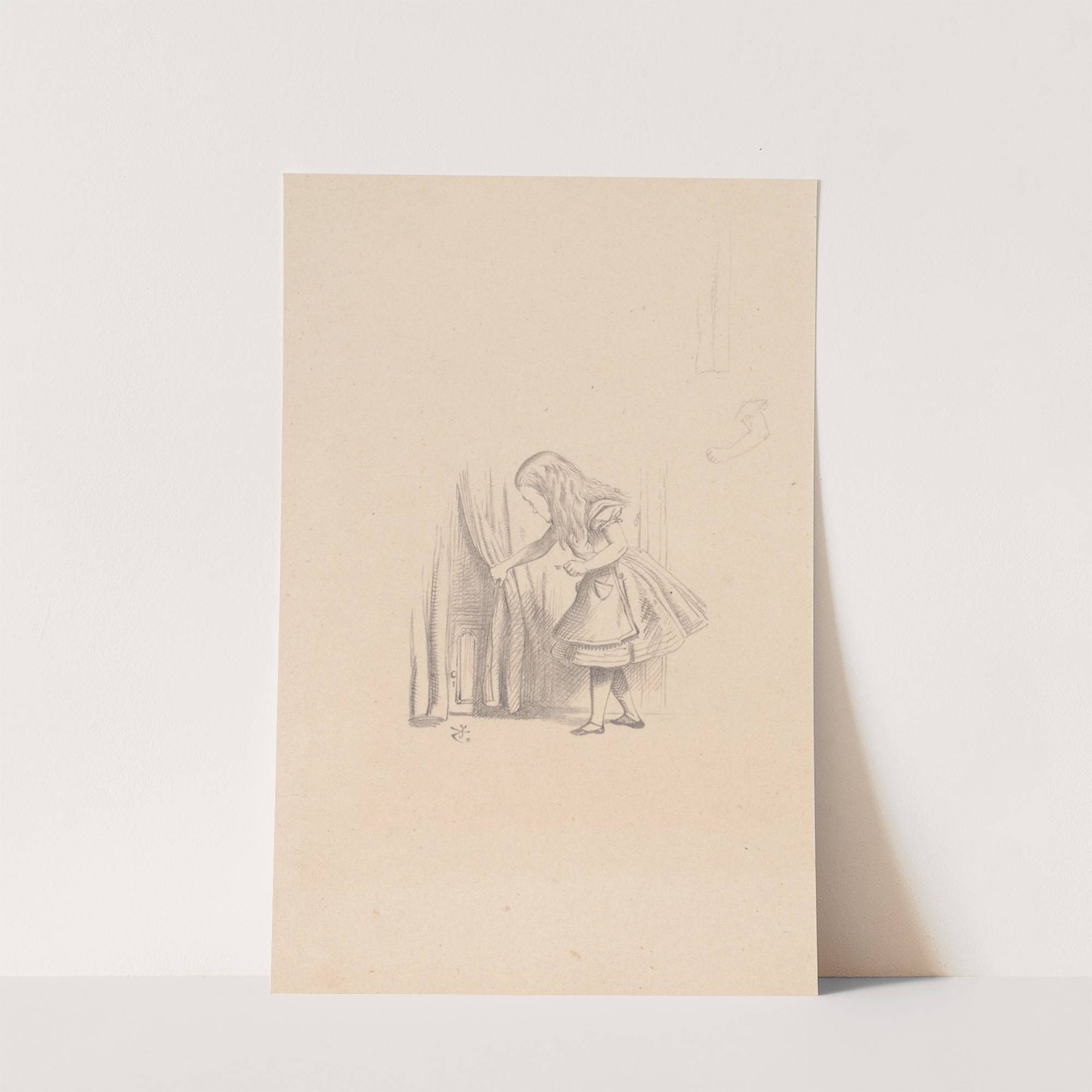 Drawing of Alice looking for the door by Sir John Tenniel - Wall Art Print