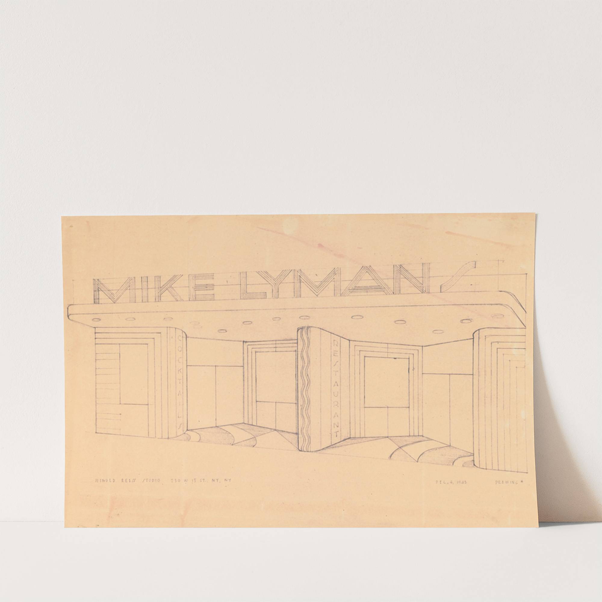 Drawings for proposed decorations of Mike Lyman’s Restaurant, 424 W. Sixth St. Los Angeles, CA. Perspective of entrance by Winold Reiss - Wall Art Print