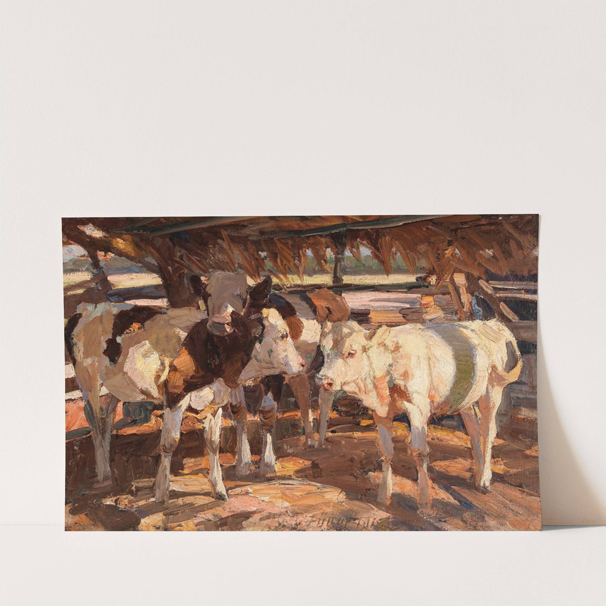 Drei Kälber bei der Futterraufe by Heinrich Von Zügel - Wall Art Print