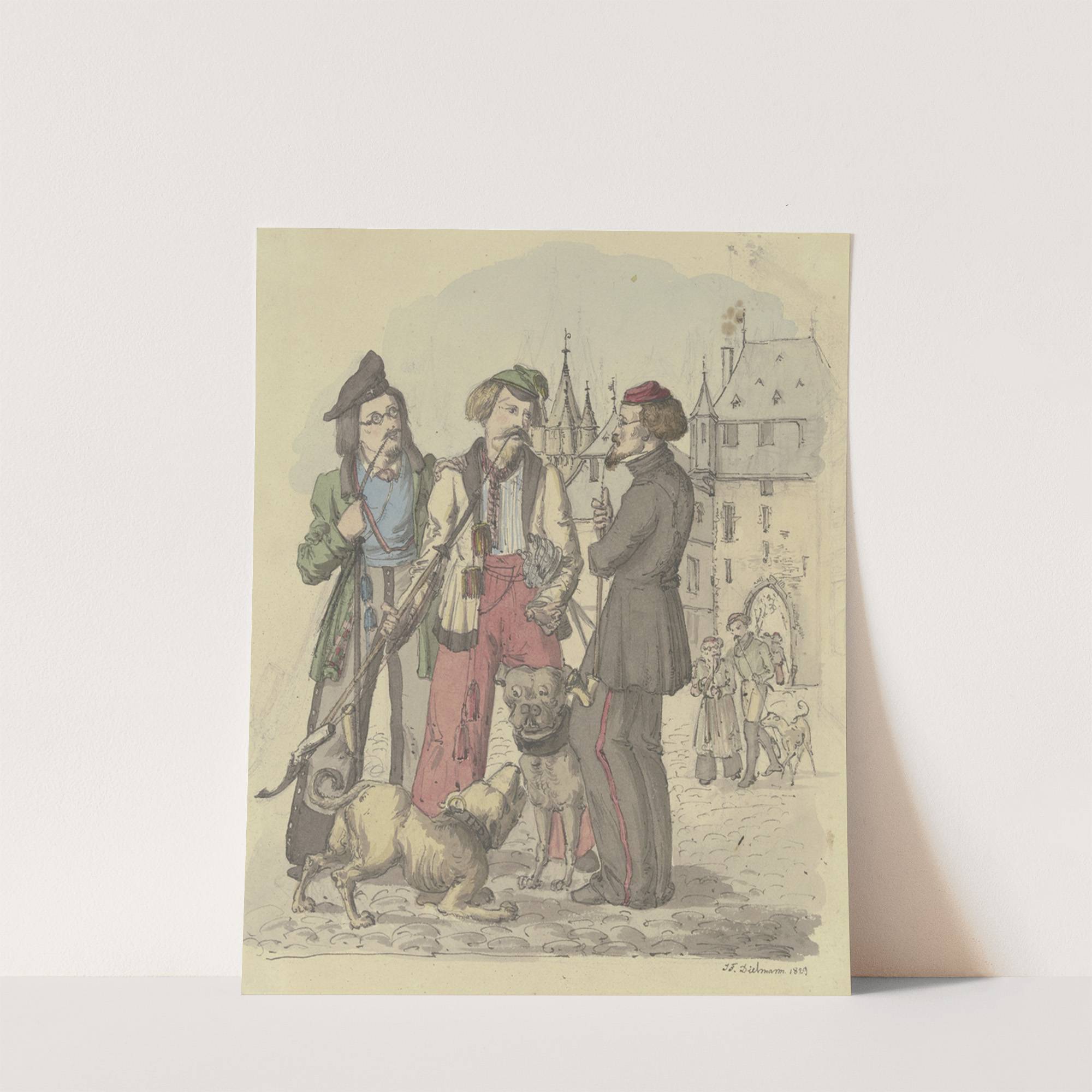 Drei rauchende Studenten mit zwei Hunden by Jakob Fürchtegott Dielmann - Wall Art Print