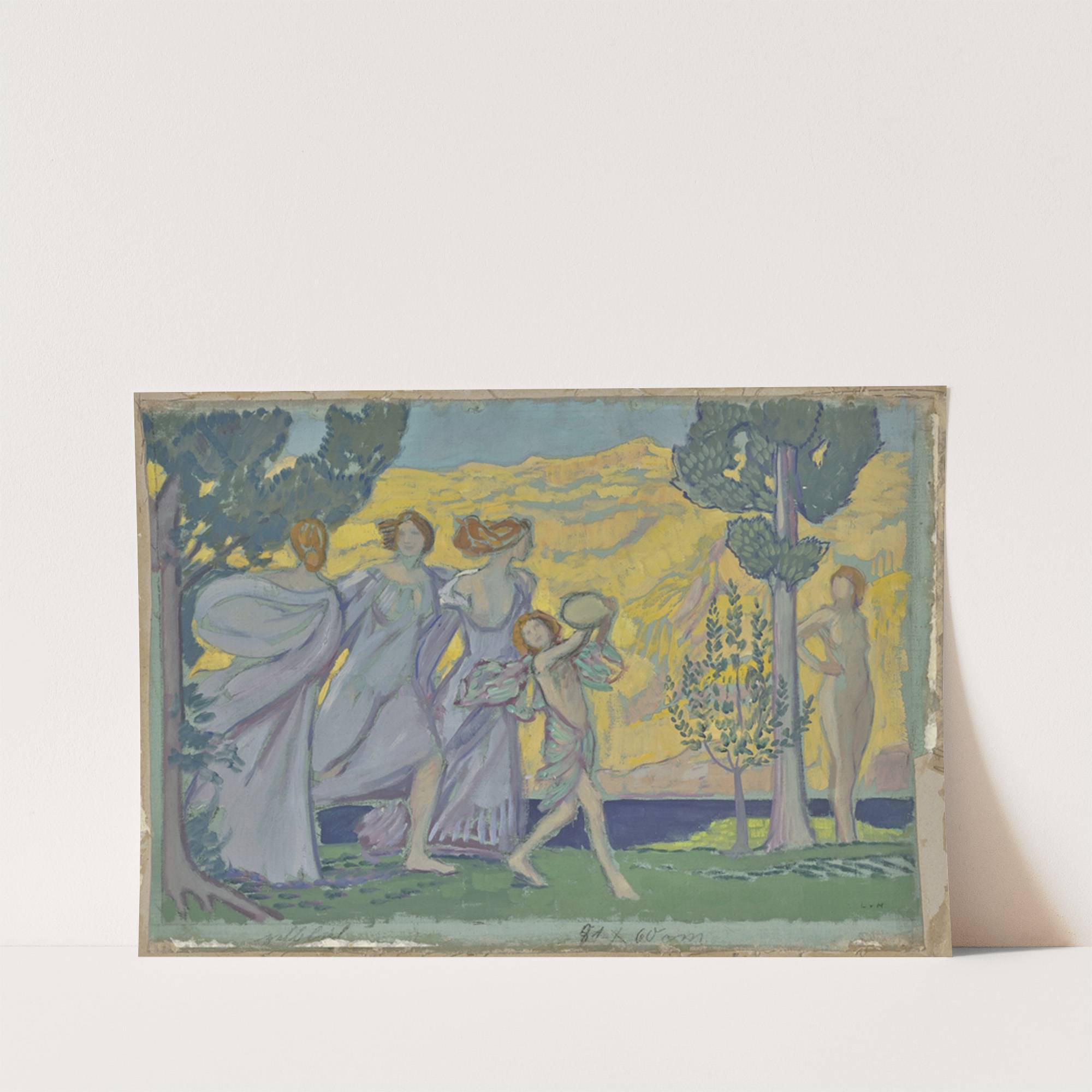 Drei tanzende Mädchen und Tamburinschläger by Ludwig von Hofmann - Wall Art Print