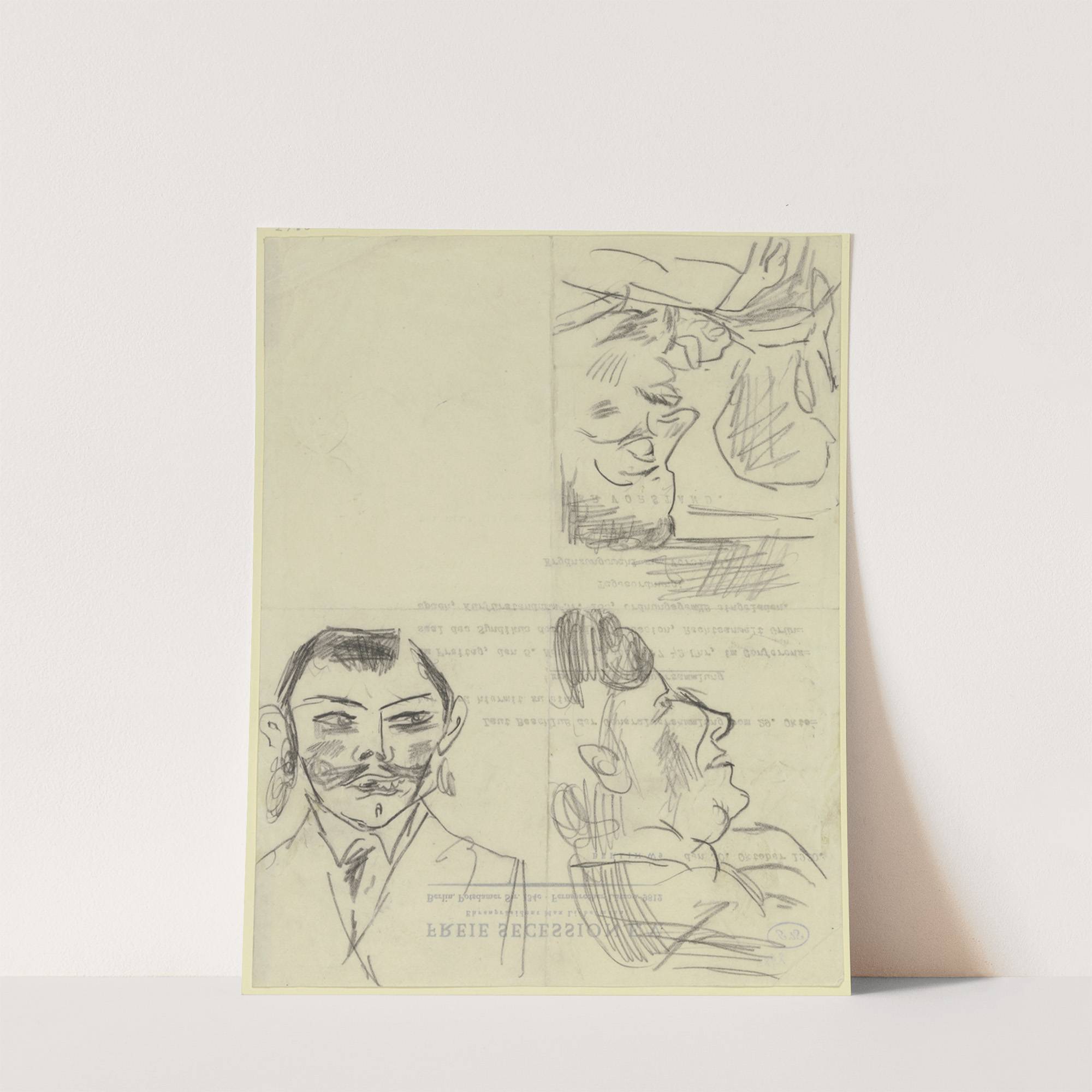 Drei Zeichnungen mit Männerköpfen by Max Beckmann - Wall Art Print