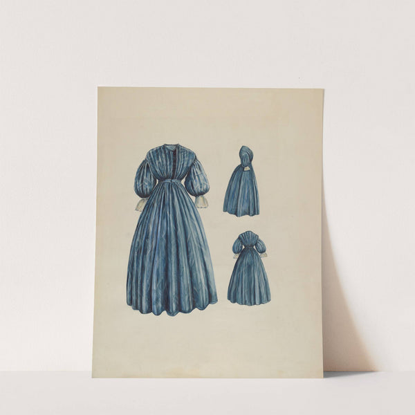 Introducing "Dress by Al Curry," a captivating watercolor illustration that showcases a beautifully draped blue dress in three distinct views. The artist uses delicate, fluid brush strokes to capture the rich texture and shimmer of the fabric, creating a visually...