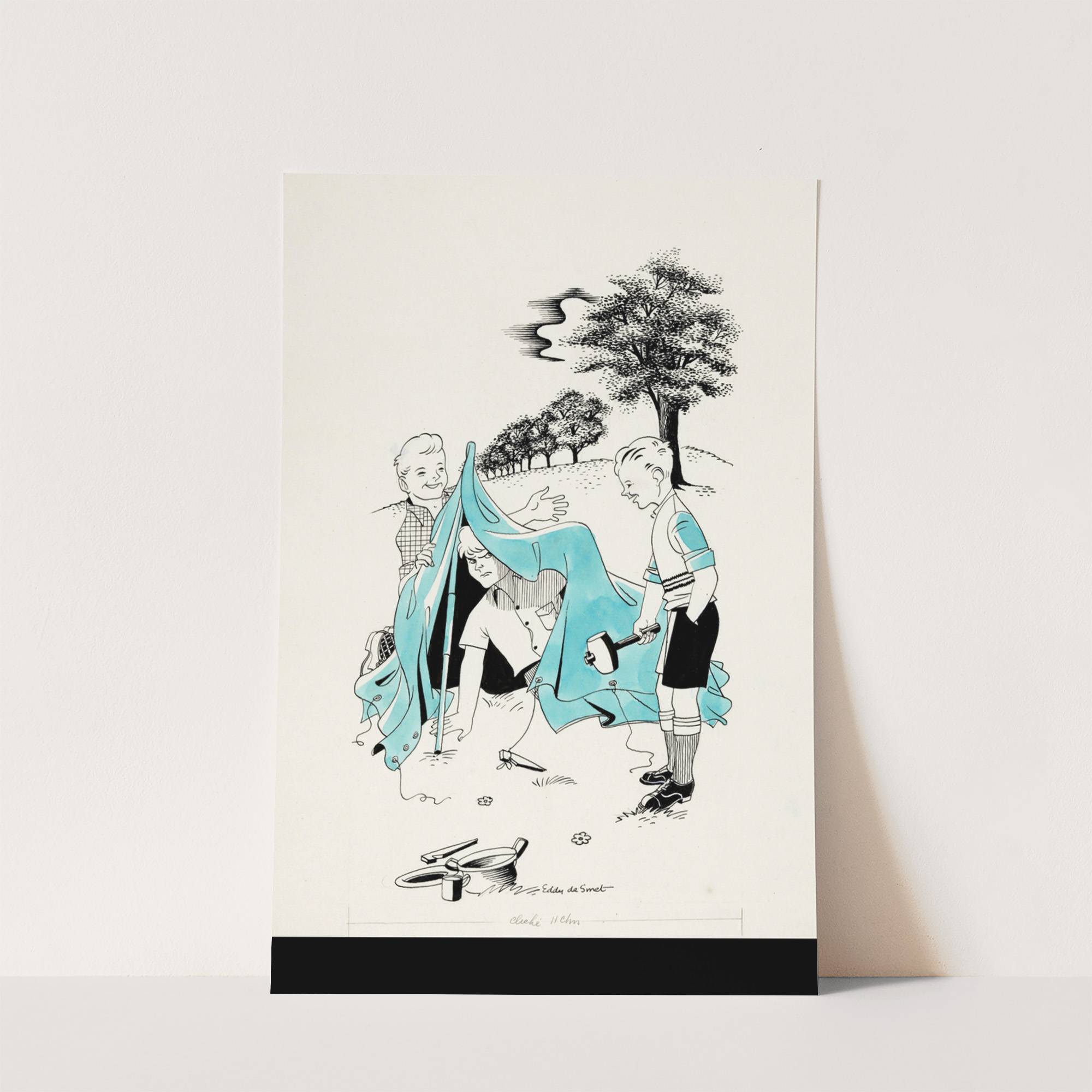 Drie jongens zetten een tent op by Eddy de Smet - Wall Art Print