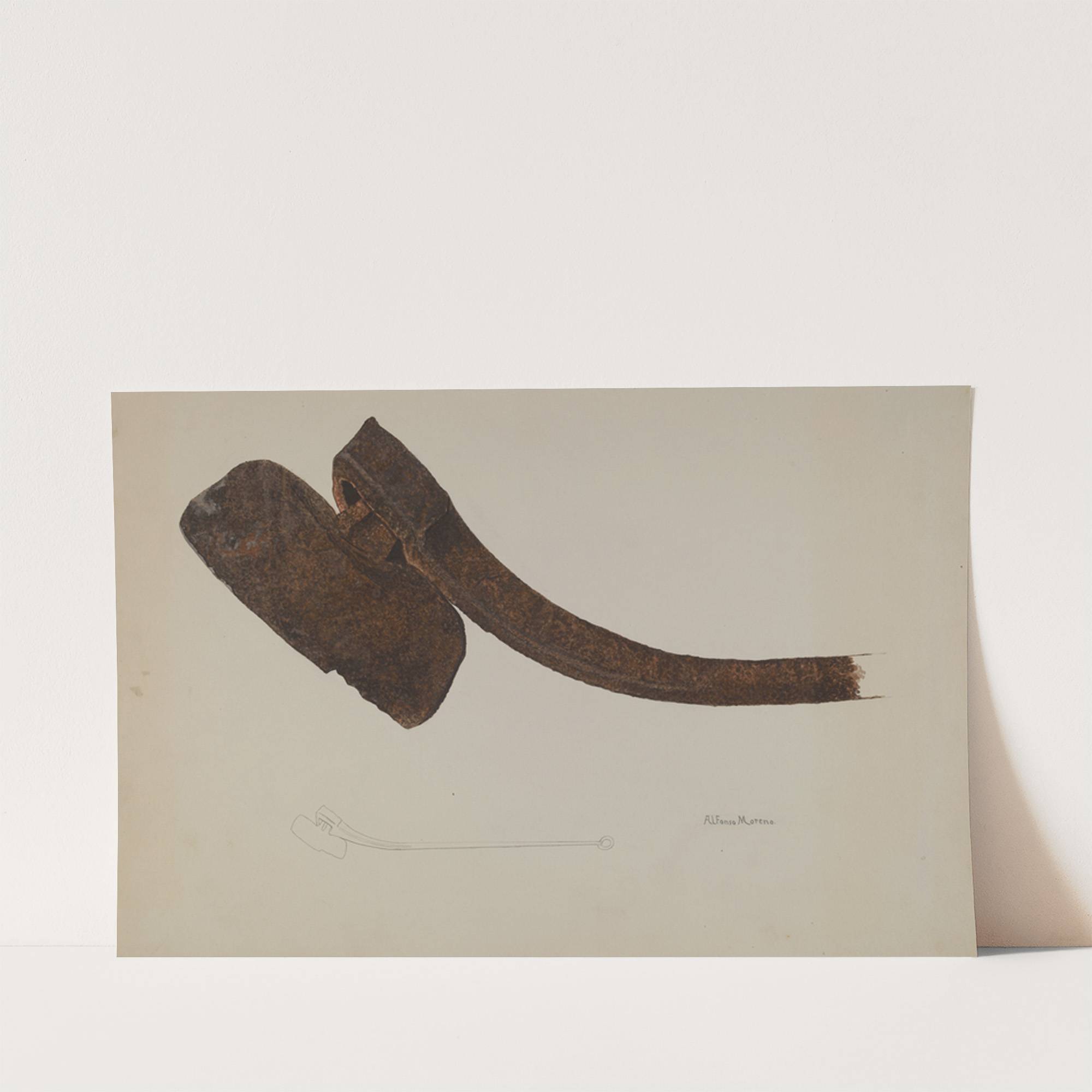 This striking artwork titled "Dumb Iron" by Alfonso Moreno features an abstract representation of a rusted object, likely a piece of metalware, rendered in dark brown and black tones on a white background. The image captures the rough texture and...