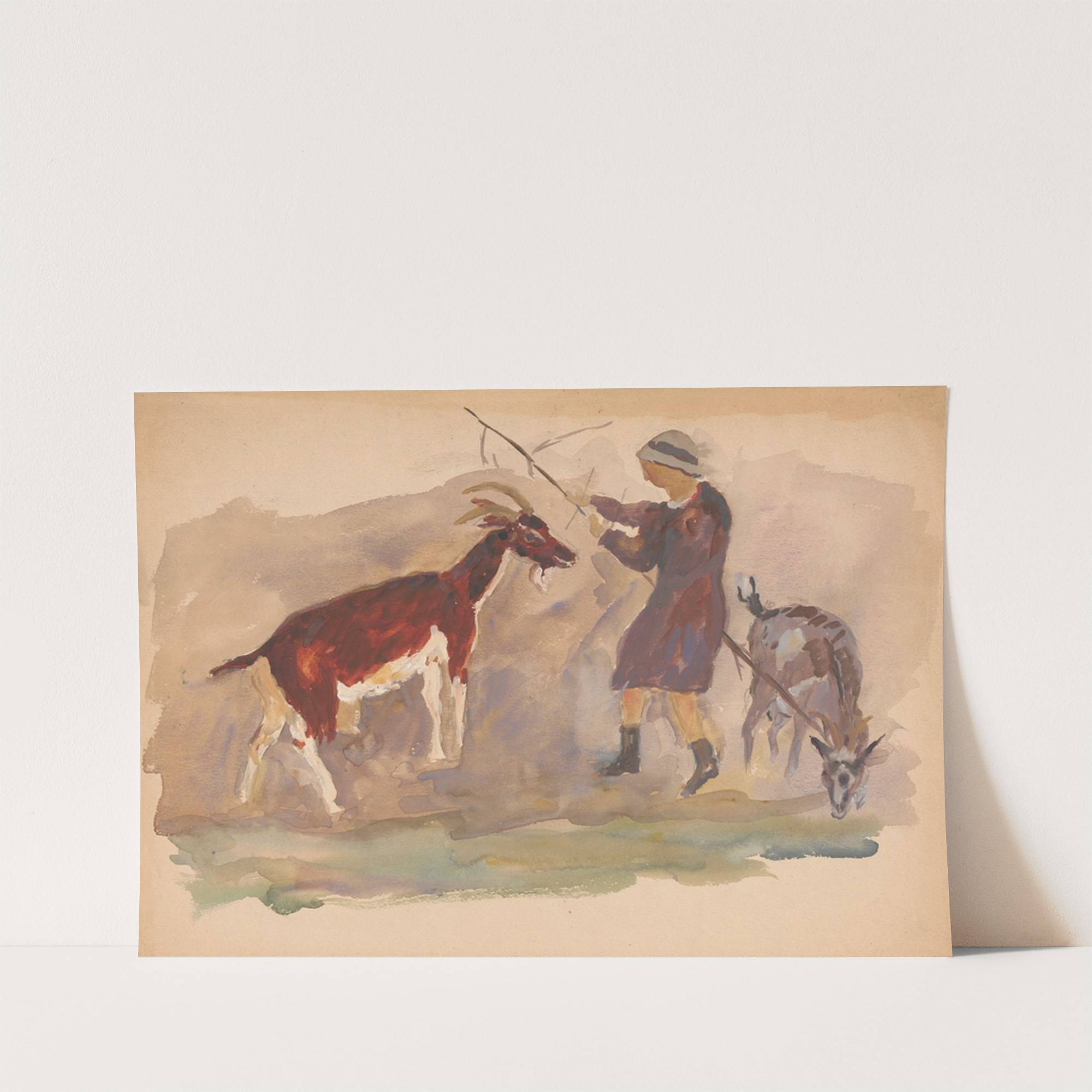 Dziewczynka z dwiema kozami (1919) by Tadeusz Makowski - Wall Art Print