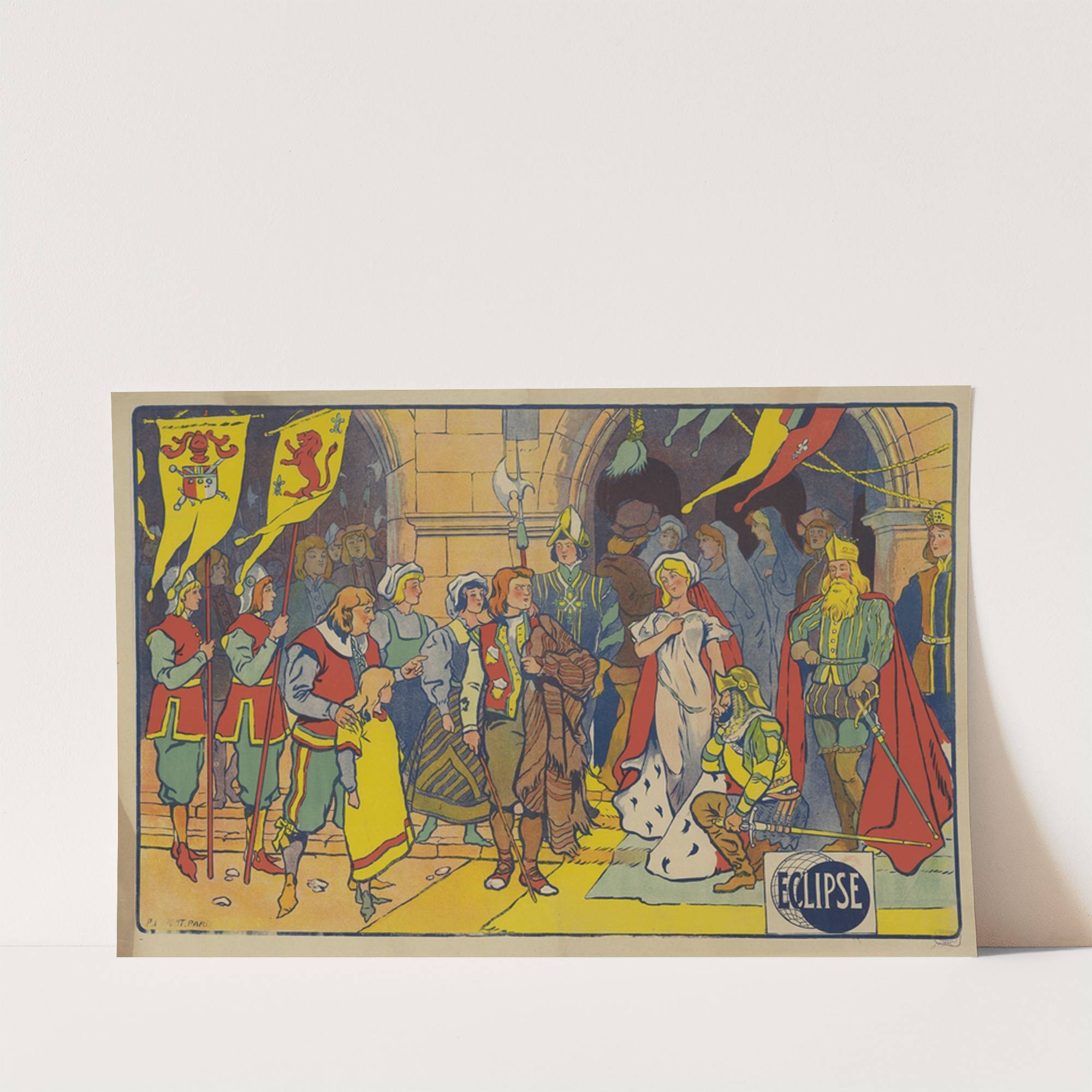Eclipse scène au moyen-âge une femme en robe blanche et cape rouge – chevalier agenouillé (1909) by Imp. Paul Dupont - Wall Art Print