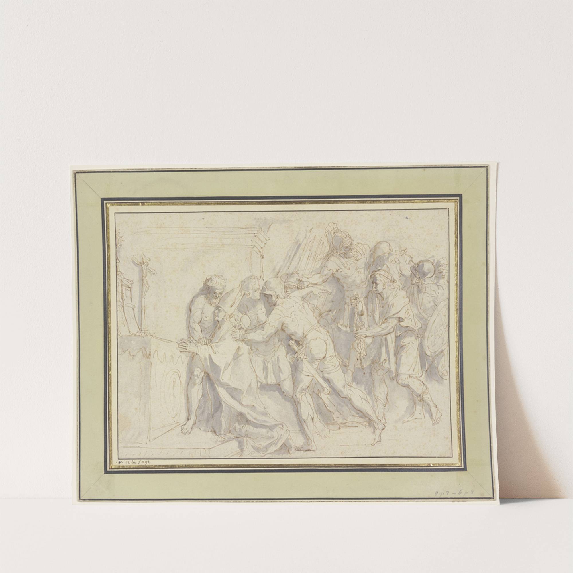 Ein Bischof wird von Soldaten am Altar angegriffen by Raymond Lafage - Wall Art Print