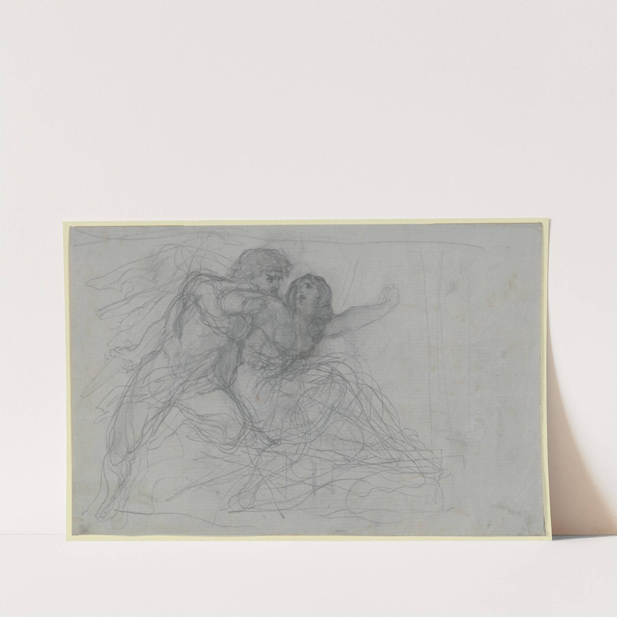 Ein Jüngling mit Schwert umschlingt einen fliehenden weiblichen Akt by Victor Müller - Wall Art Print