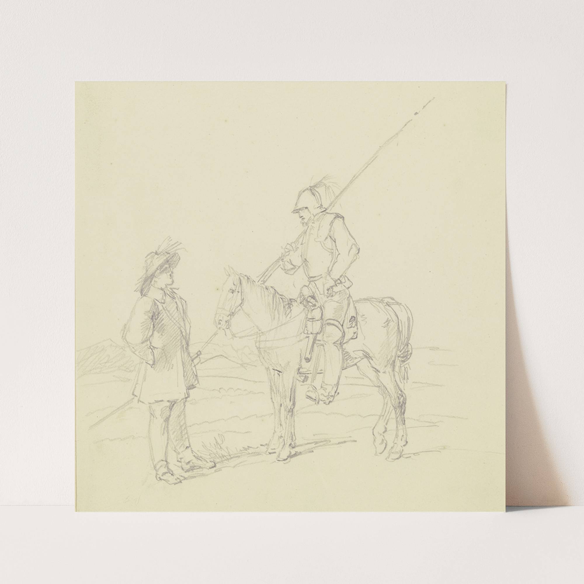 Ein Lanzenreiter aus dem dreißigjährigen Kriege spricht mit einem Offizier zu Fuße by Carl Wilhelm von Heideck - Wall Art Print