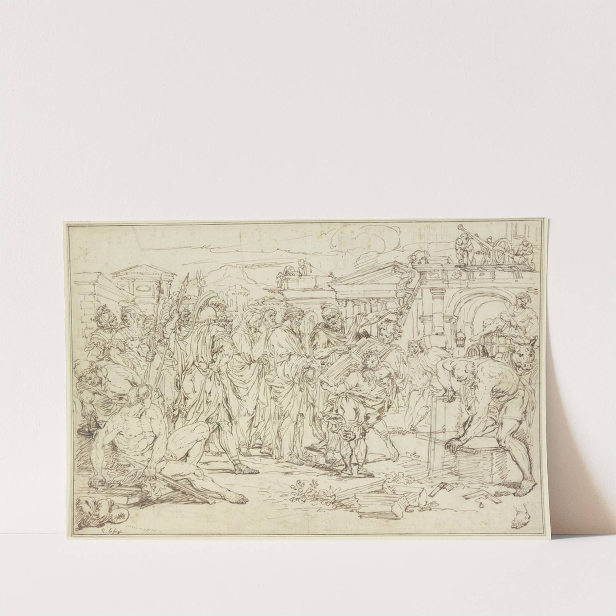 Einem Städtegründer wird ein Plan gezeigt by Raymond Lafage - Wall Art Print