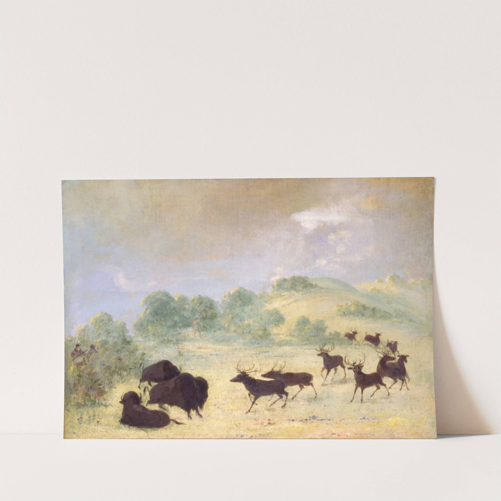 Elk and Buffalo Making Acquaintance, Texas by George Catlin - Wall Art Print