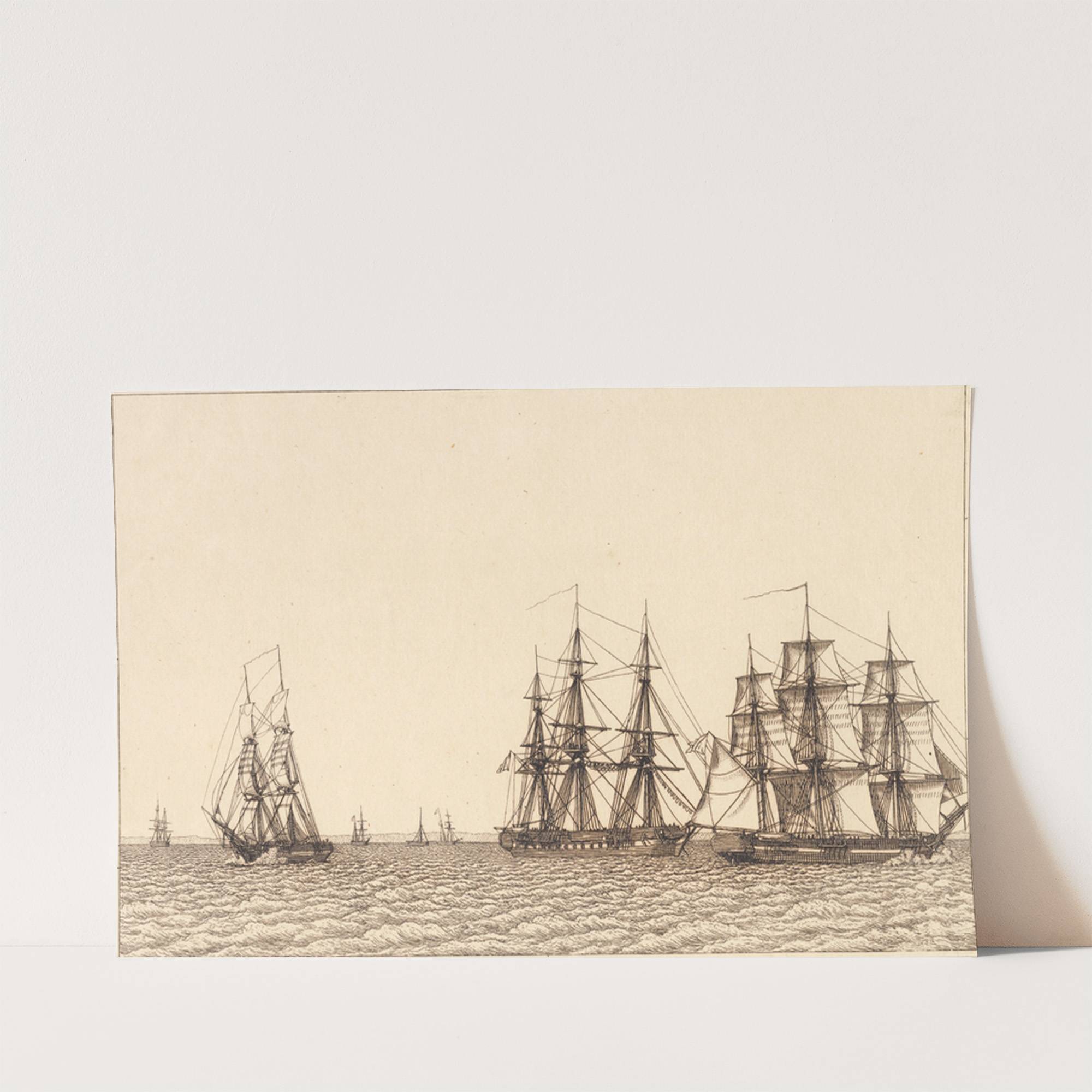 En brig sejlende Illustration til Linearperspectiven , Tavle IXb by Christoffer Wilhelm Eckersberg - Wall Art Print