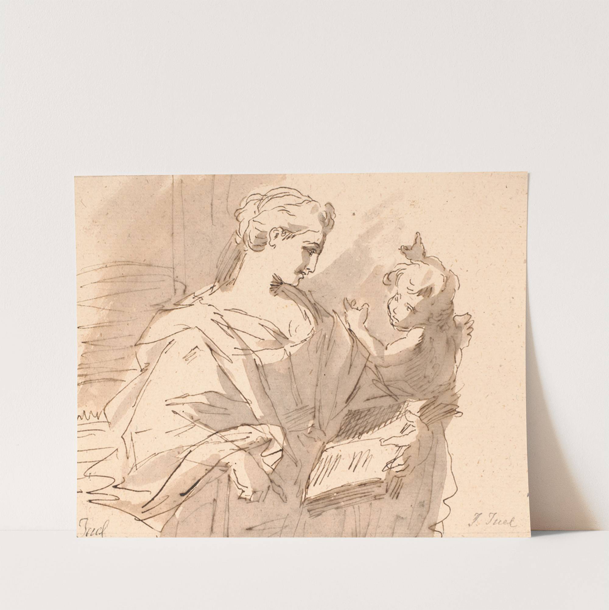 En helgeninde med en bog og en putto by Jens Juel - Wall Art Print