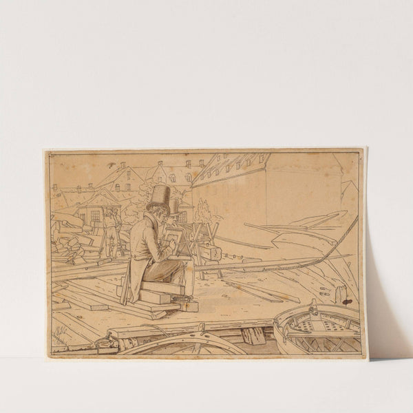 En kunstner malende ved et skibsværft by Martinus Rørbye - Wall Art Print